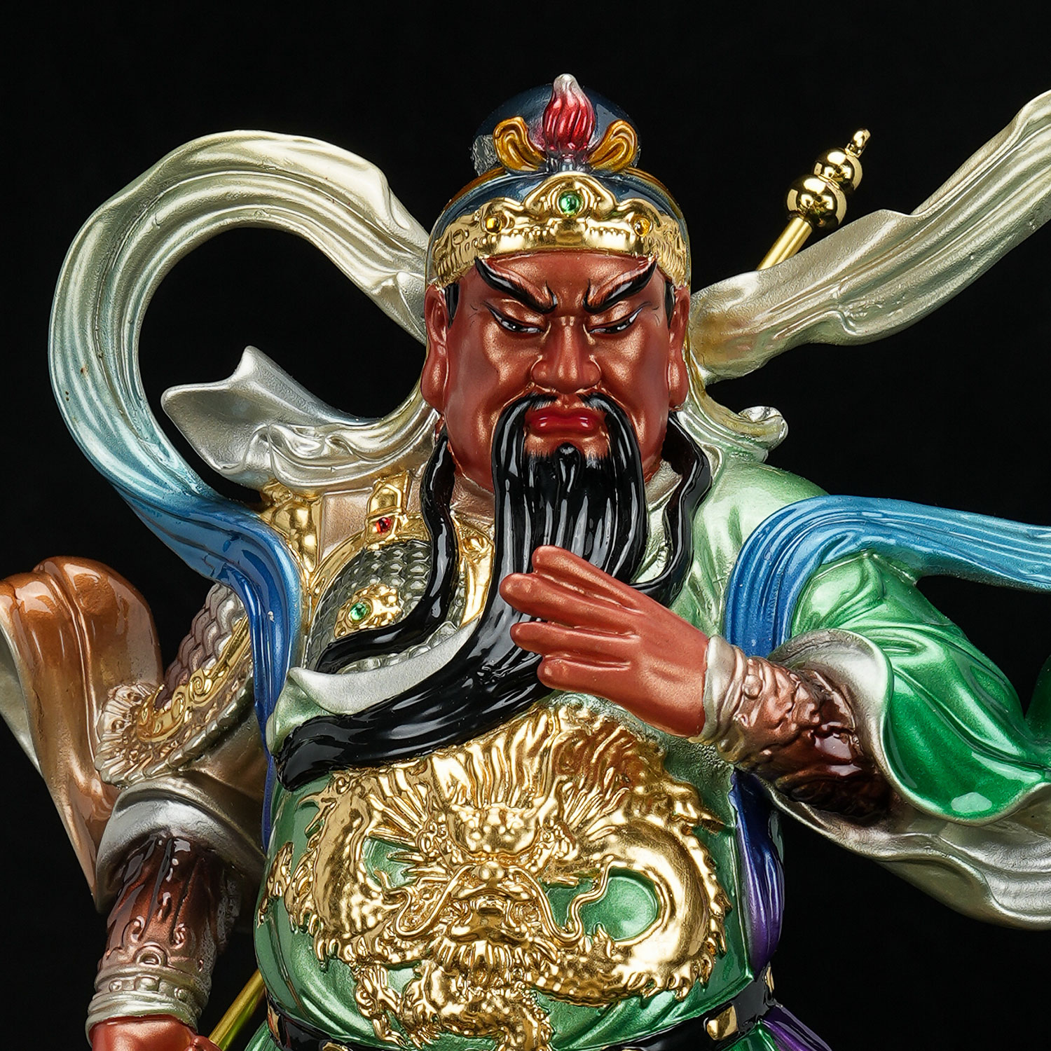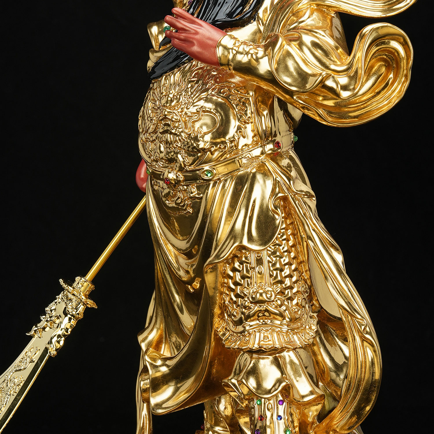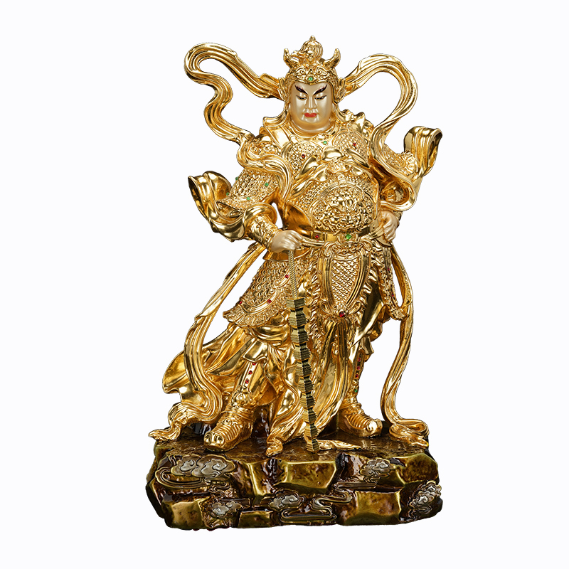 康盛黄铜伽蓝韦陀菩萨佛像居家中式供奉铜关公韦驮像贴金彩绘摆件