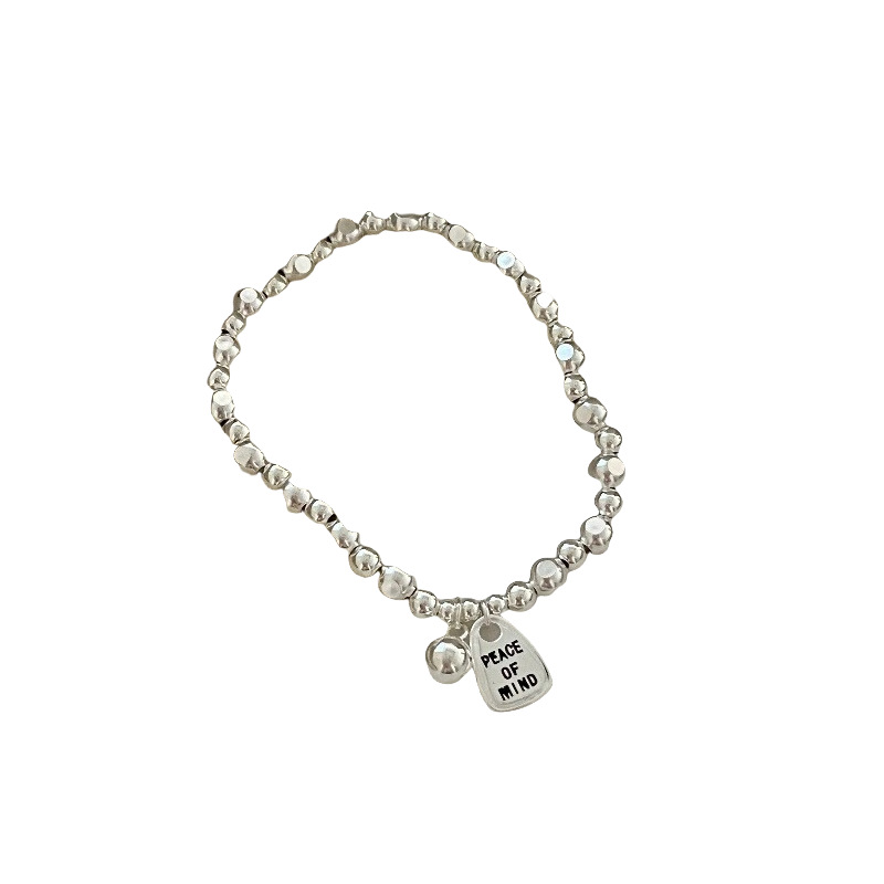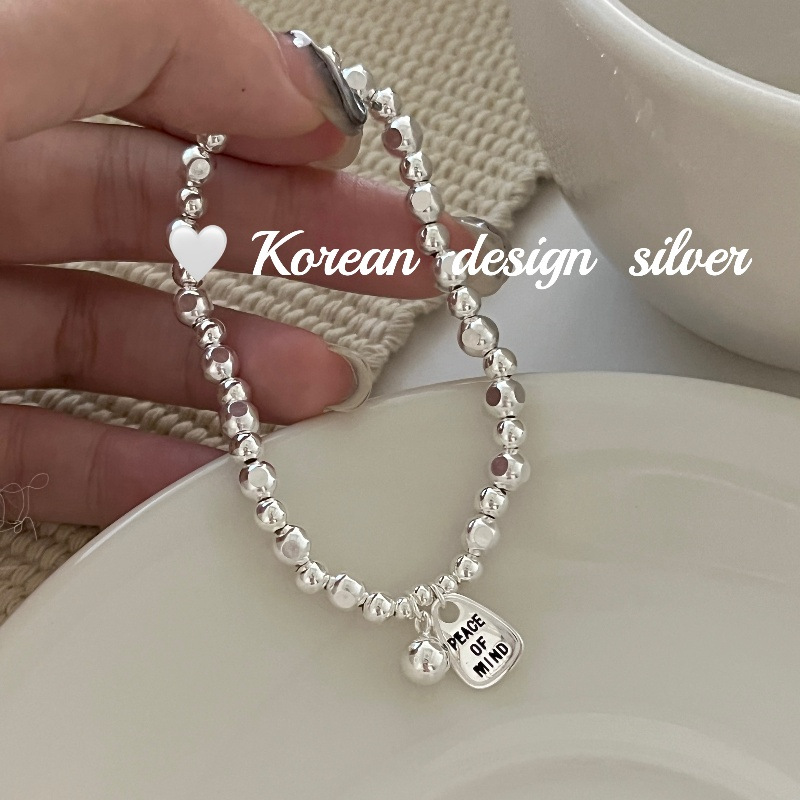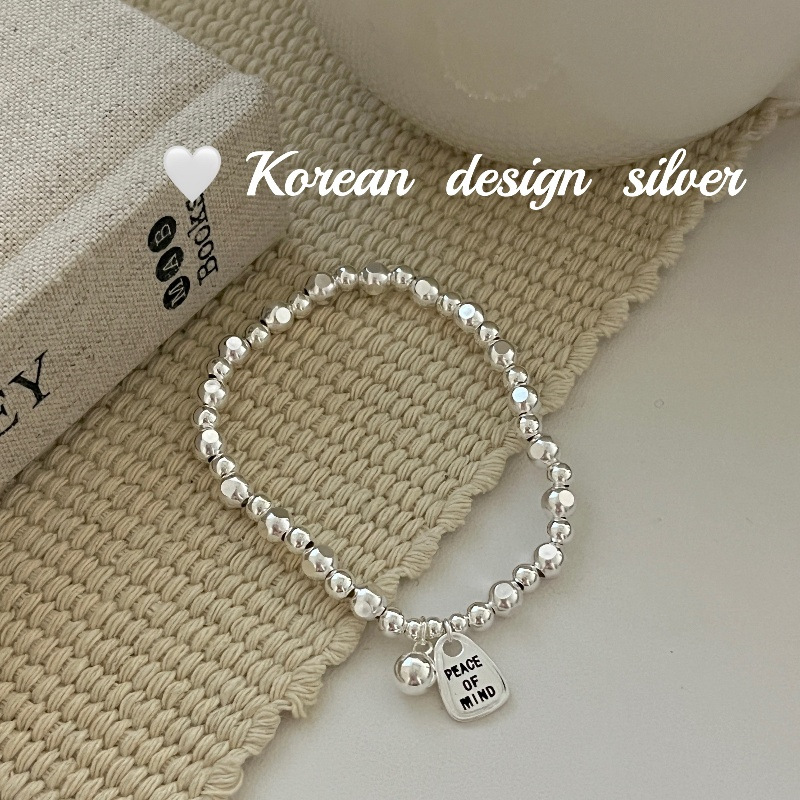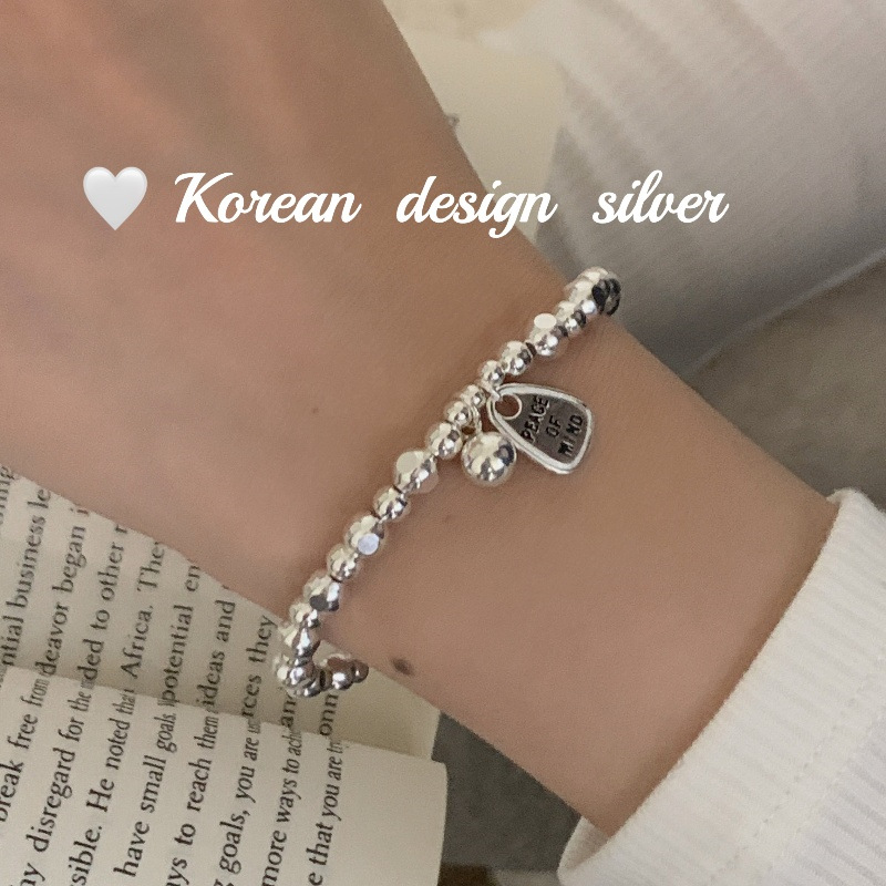 韩国ins风简约网红手饰品 S925纯银切面圆珠椭圆牌手链叠戴小众女