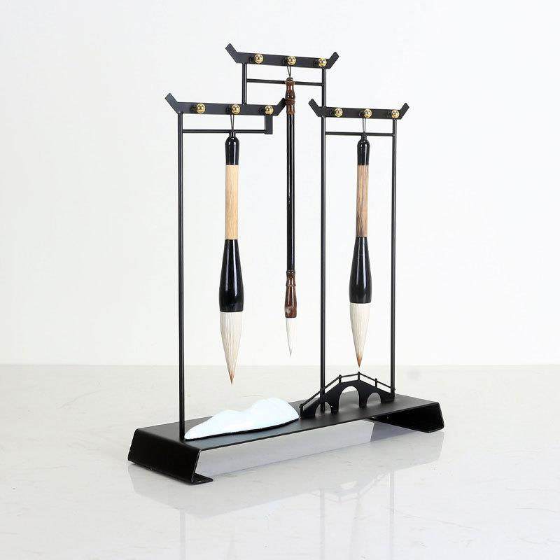 现代新中式禅意毛笔架摆件创意样板间书房办公桌书桌软装饰品摆设