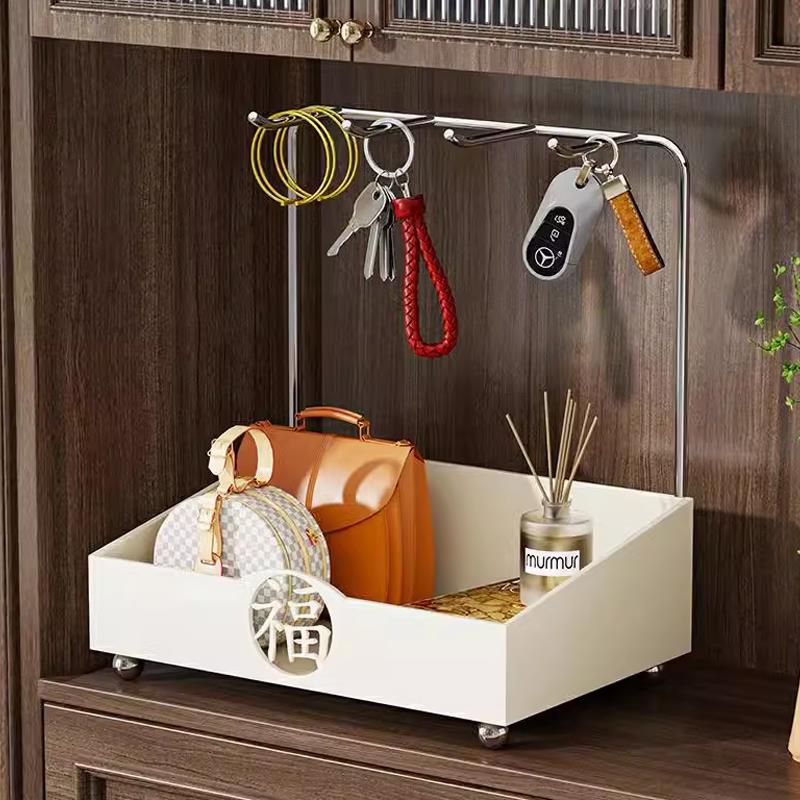 玄关放钥匙收纳摆件入户门口鞋柜上置物架进门装饰收纳盒轻奢挂架