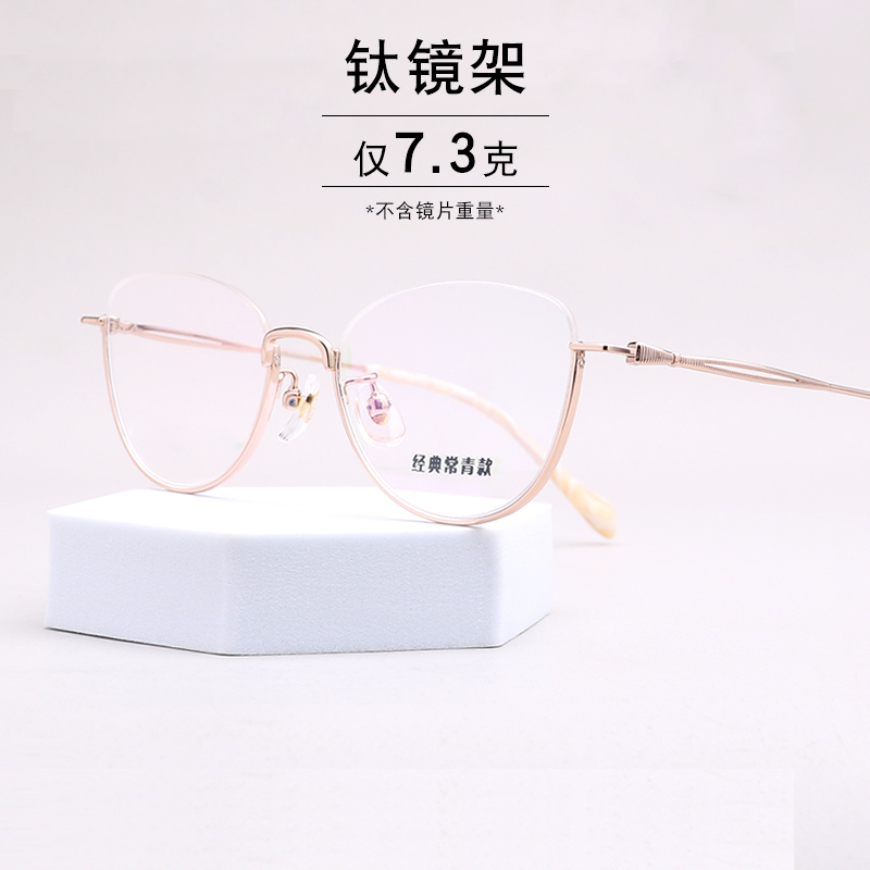 猫眼下半框眼镜近视女可配度数专业配镜小框钛超轻眼睛圆脸女款