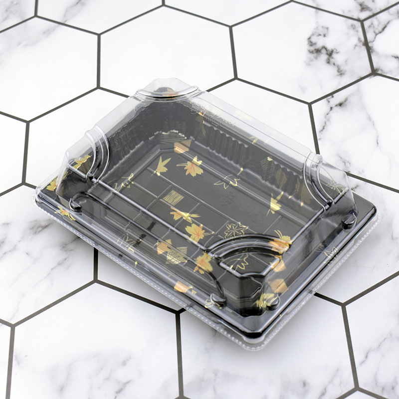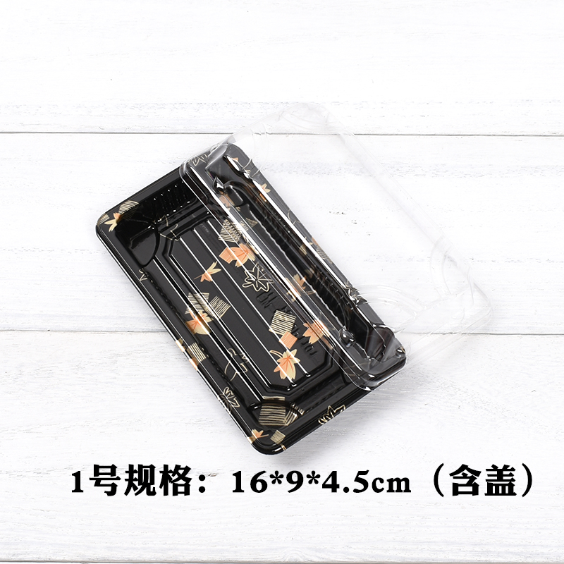 寿司包装盒印花打包盒金叶包邮碟子一次性日式塑料外卖三文鱼刺身