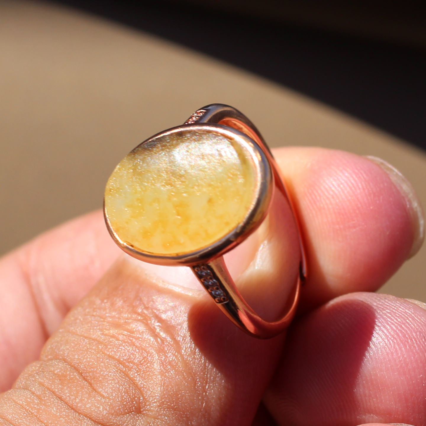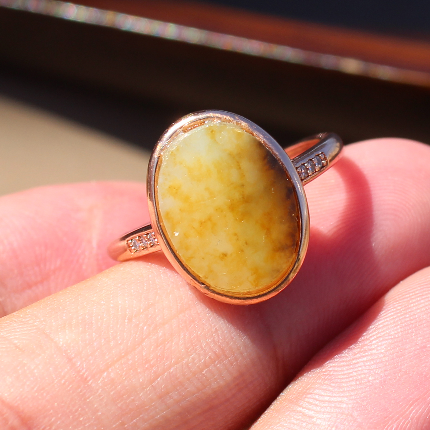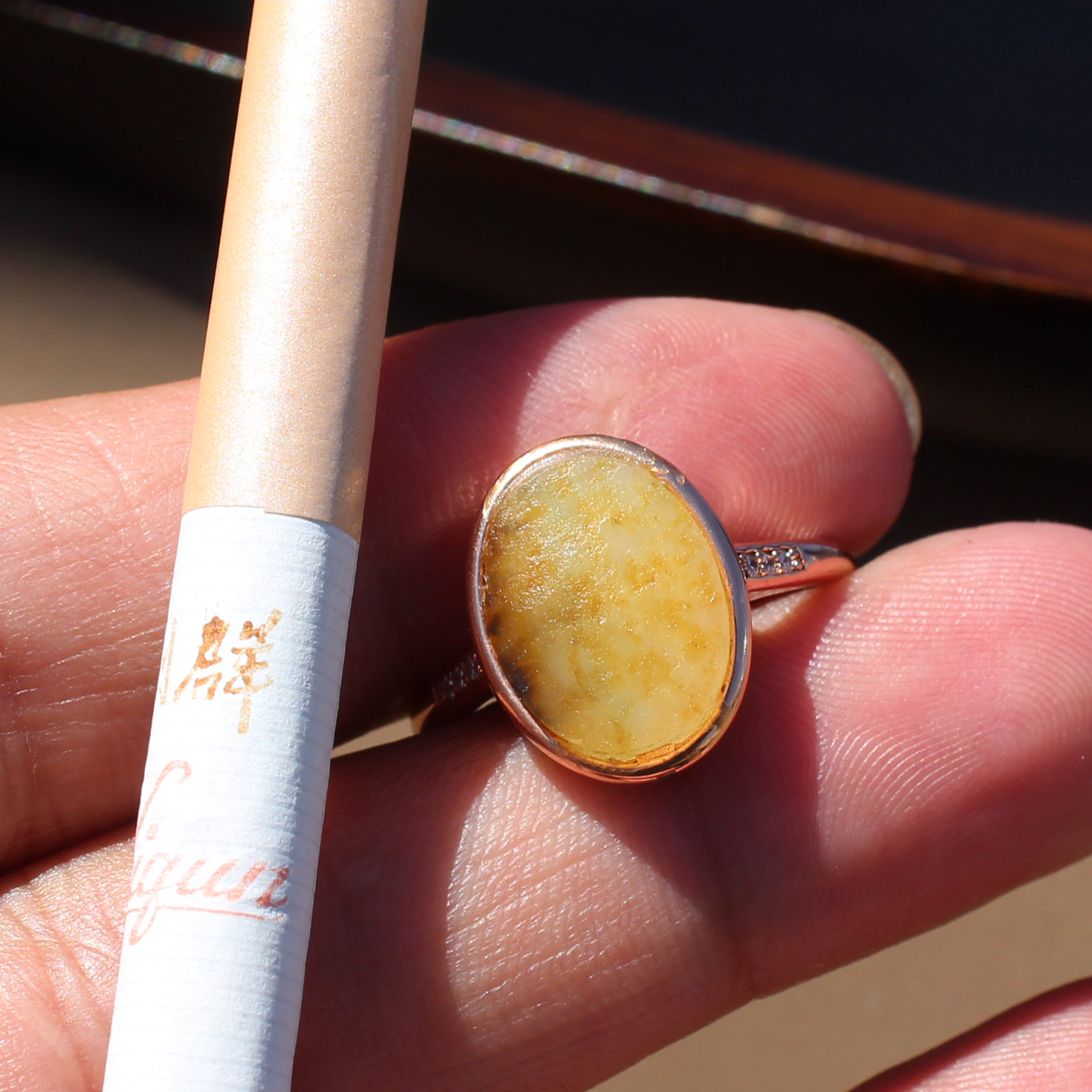 大漏方言和田玉精品特色新疆洒金皮白玉籽料银镶钳戒指扳指A1