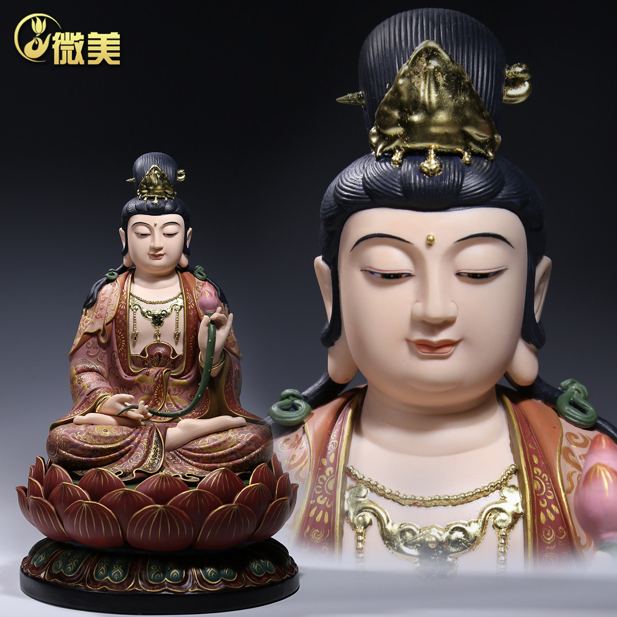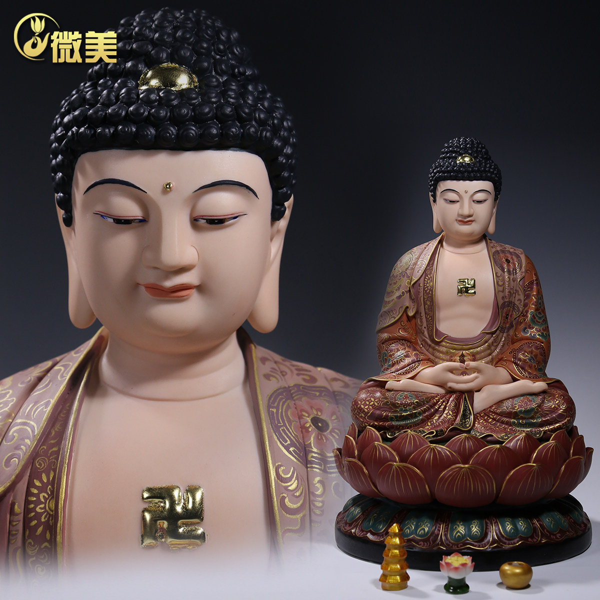 微美10至19寸唐卡敦煌彩绘西方三圣佛像娑婆三圣摆件矿物质彩陶瓷