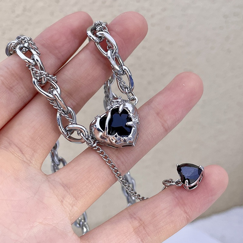 爱心锆石卫衣项链女款设计感小众高级t恤配饰甜酷嘻哈锁骨链