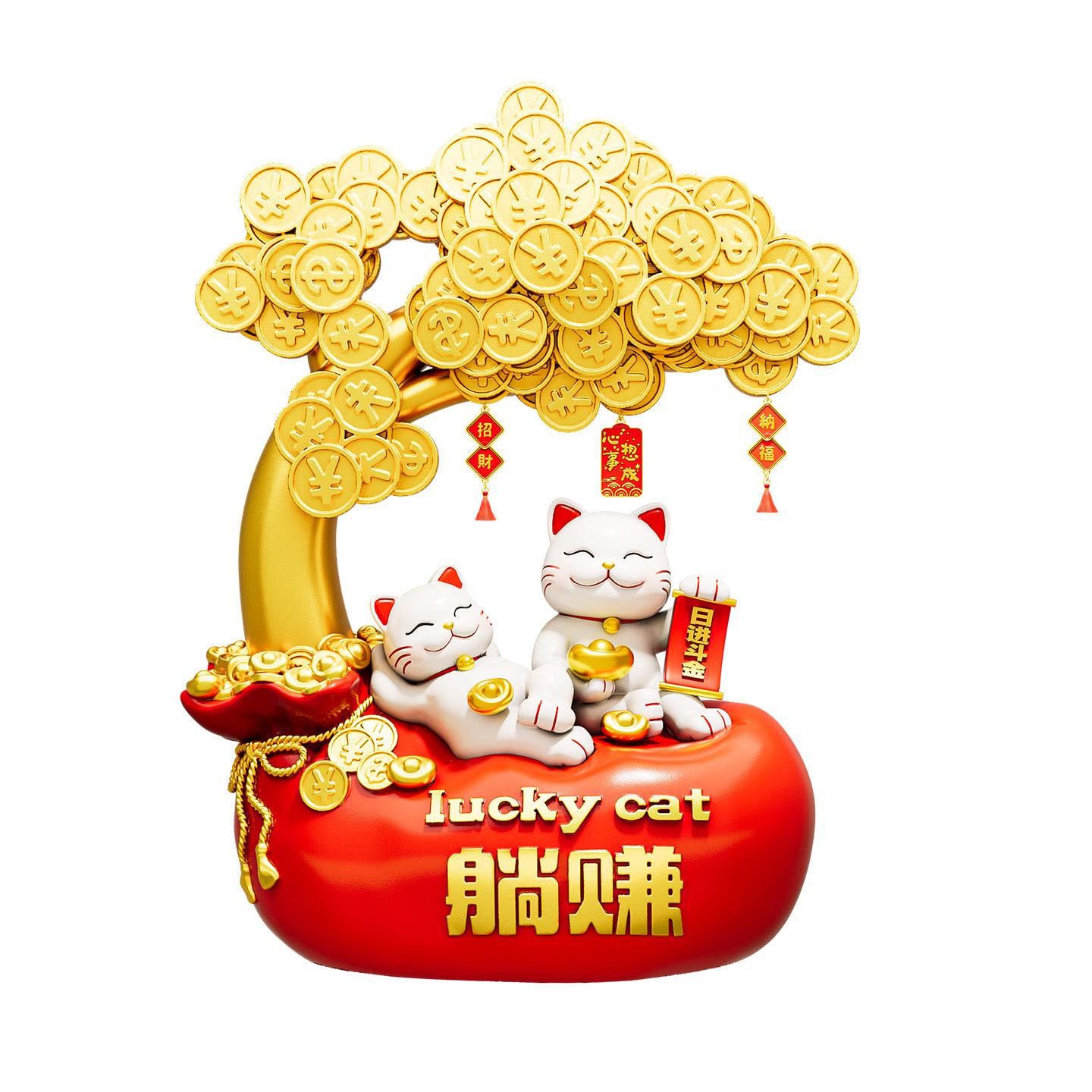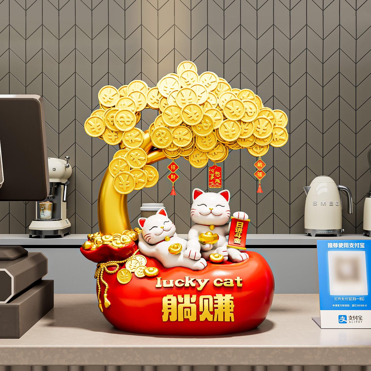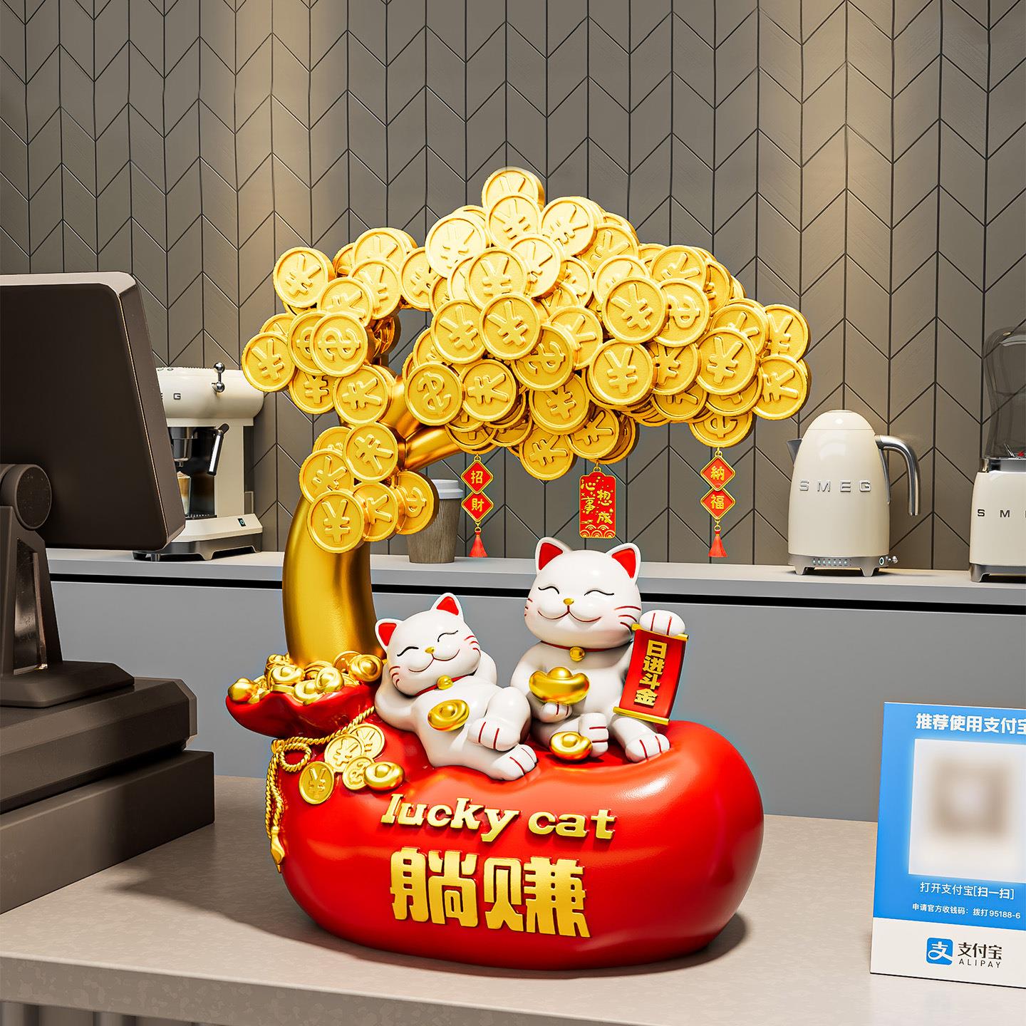 发财树招财猫工艺品摆件客厅高级感店铺前台装饰乔迁新居开业礼物