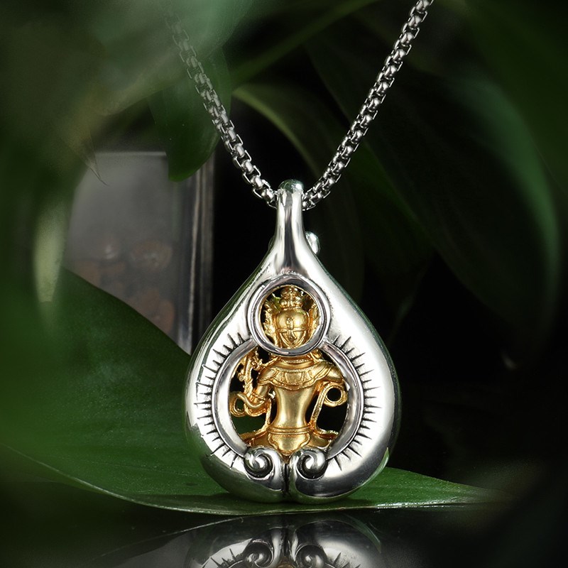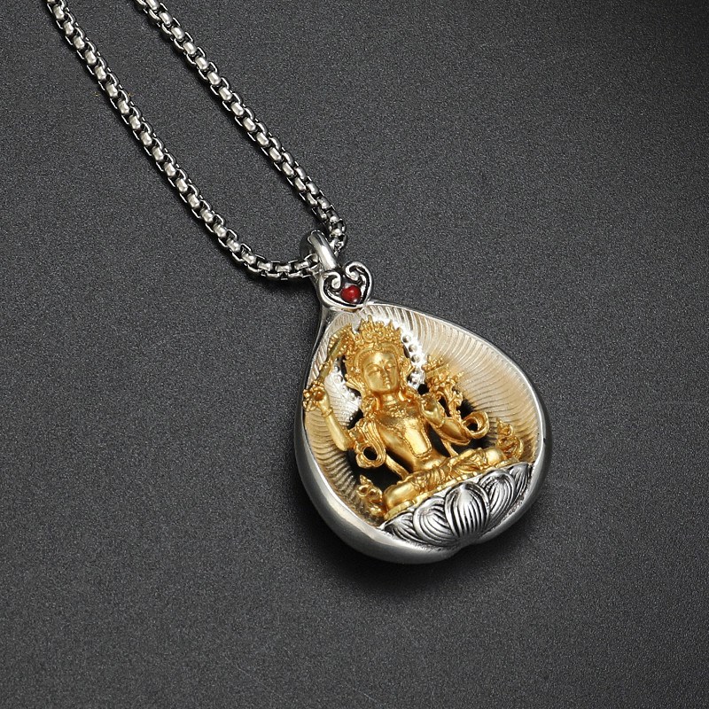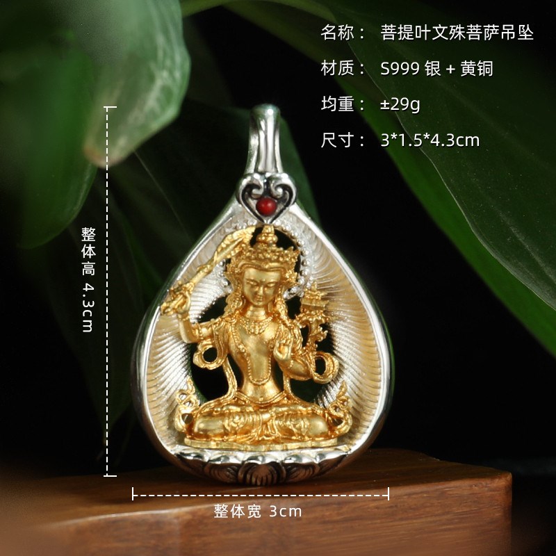 速发藏式S菩提叶文殊菩萨佛像项链吊坠民族风挂件智慧男配饰