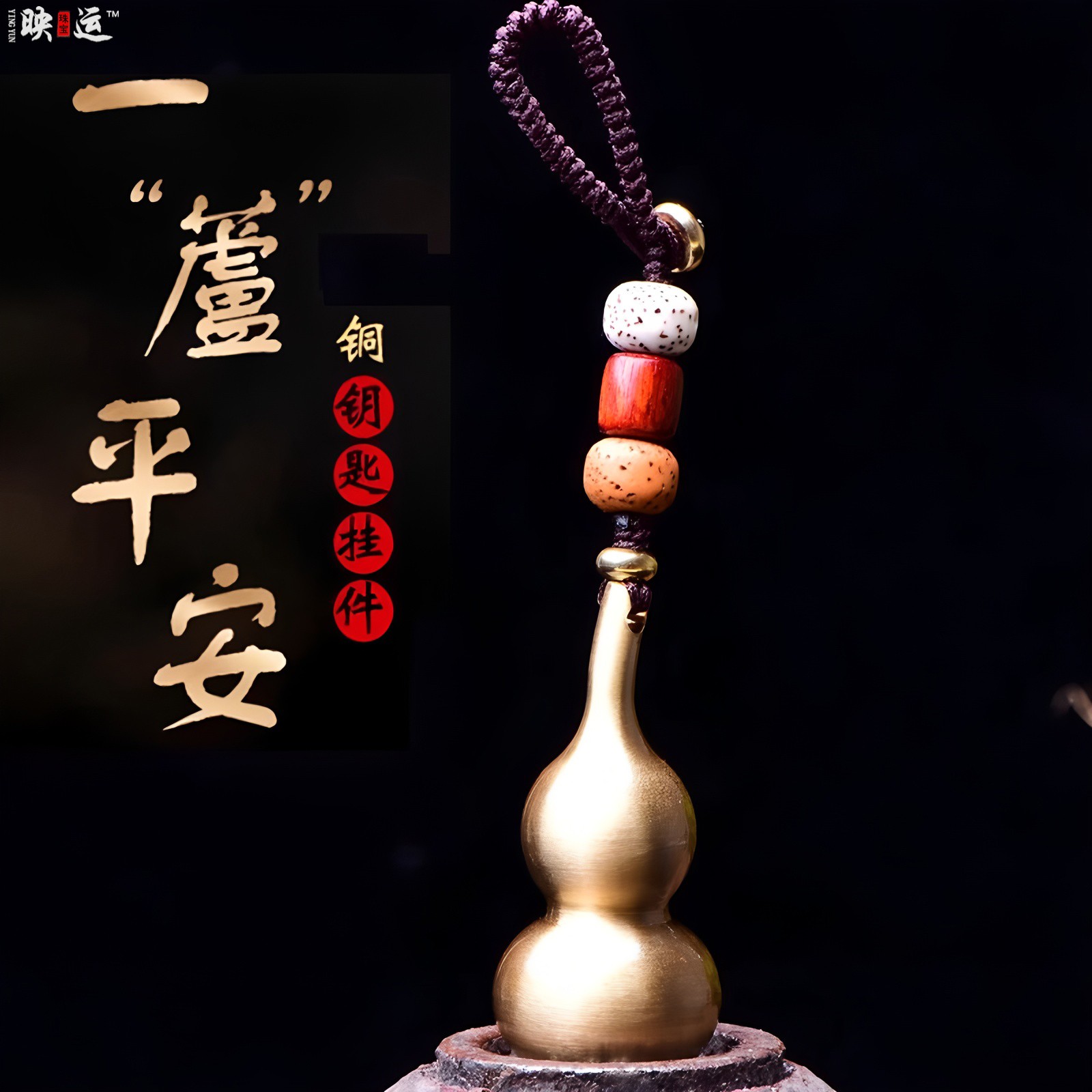 天然朱砂原石粉铜葫芦吊坠福禄平安小葫芦楞严咒经文挂件车钥匙扣