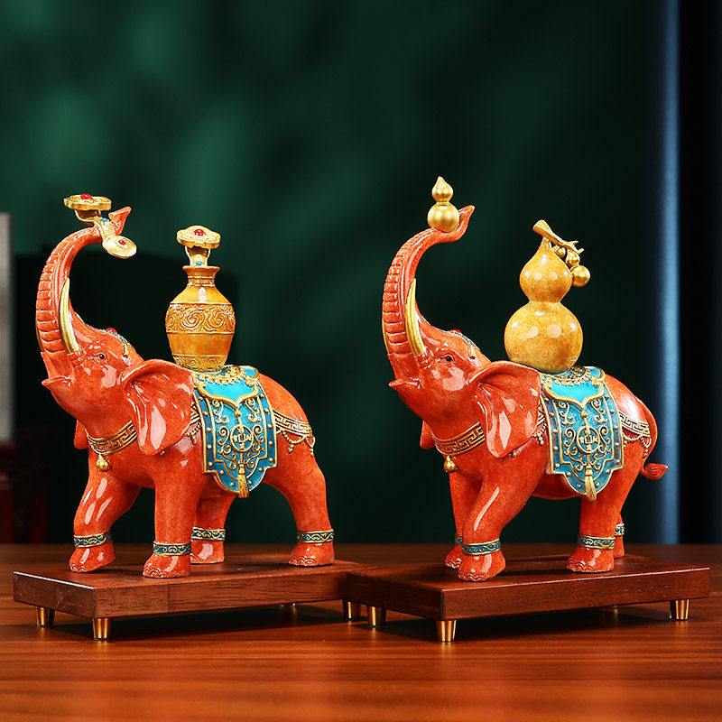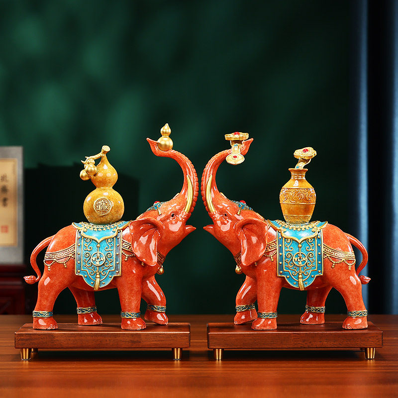 黄铜平安葫芦大象摆件一对客厅玄关电视柜装饰品乔迁新居开业礼品