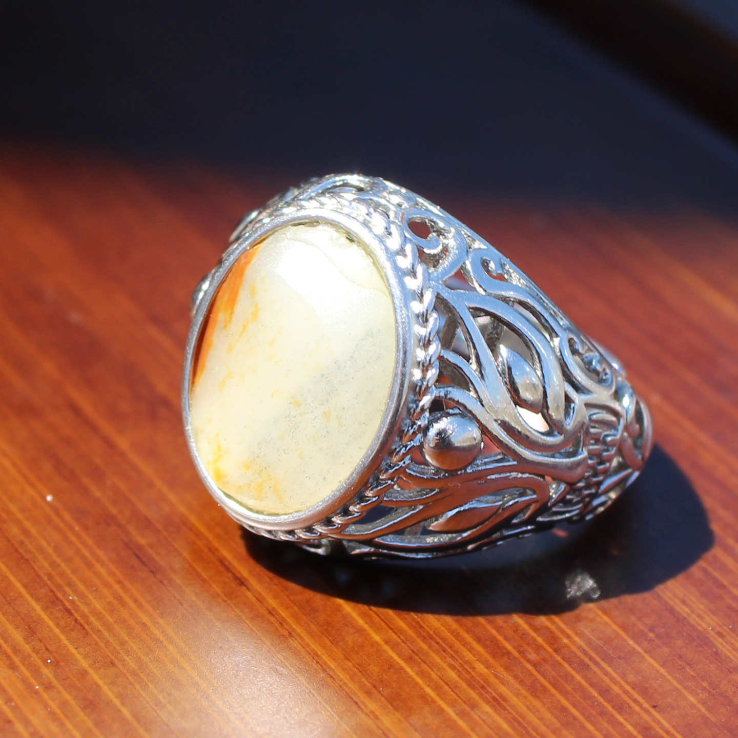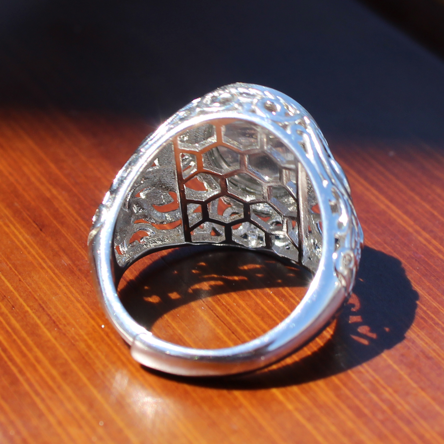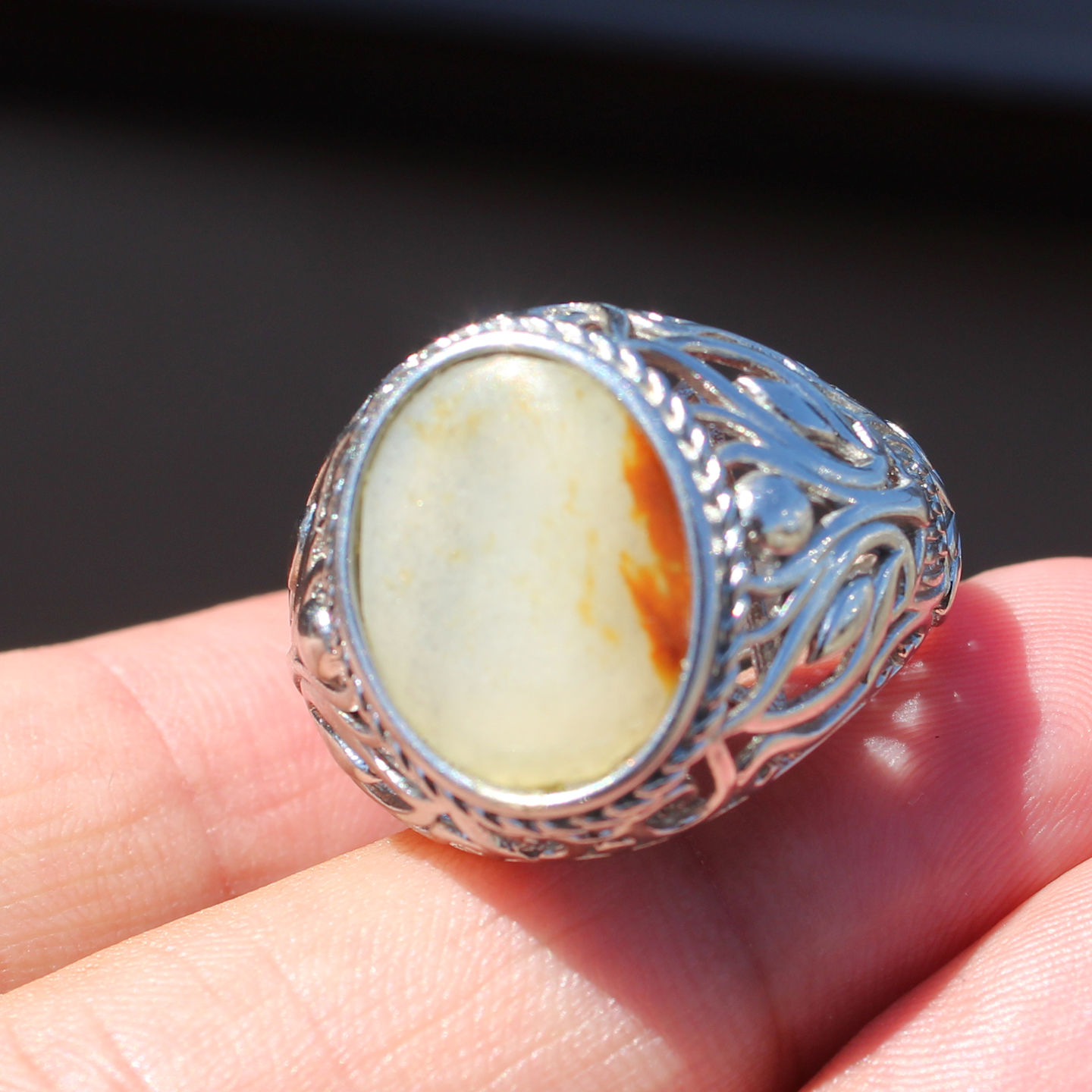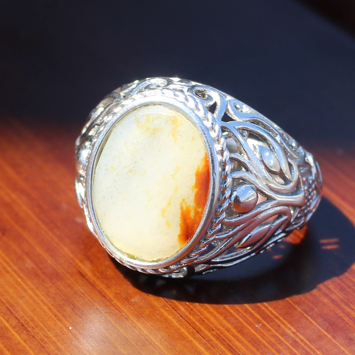 大漏方言和田玉精品特色新疆聚红皮白青花籽料银镶钳戒指扳指A1