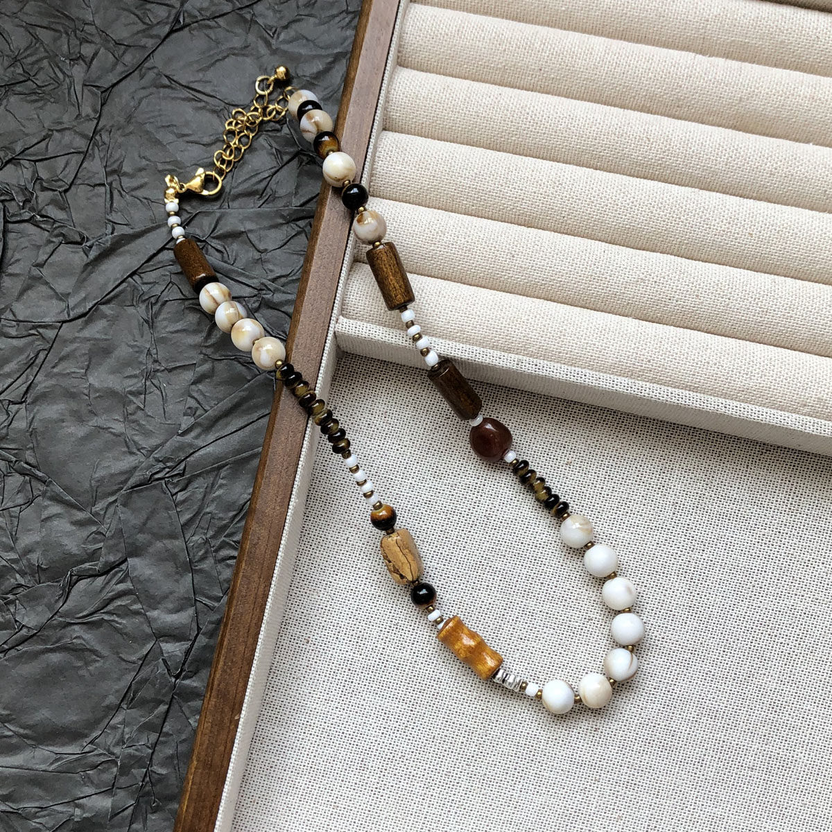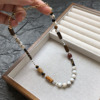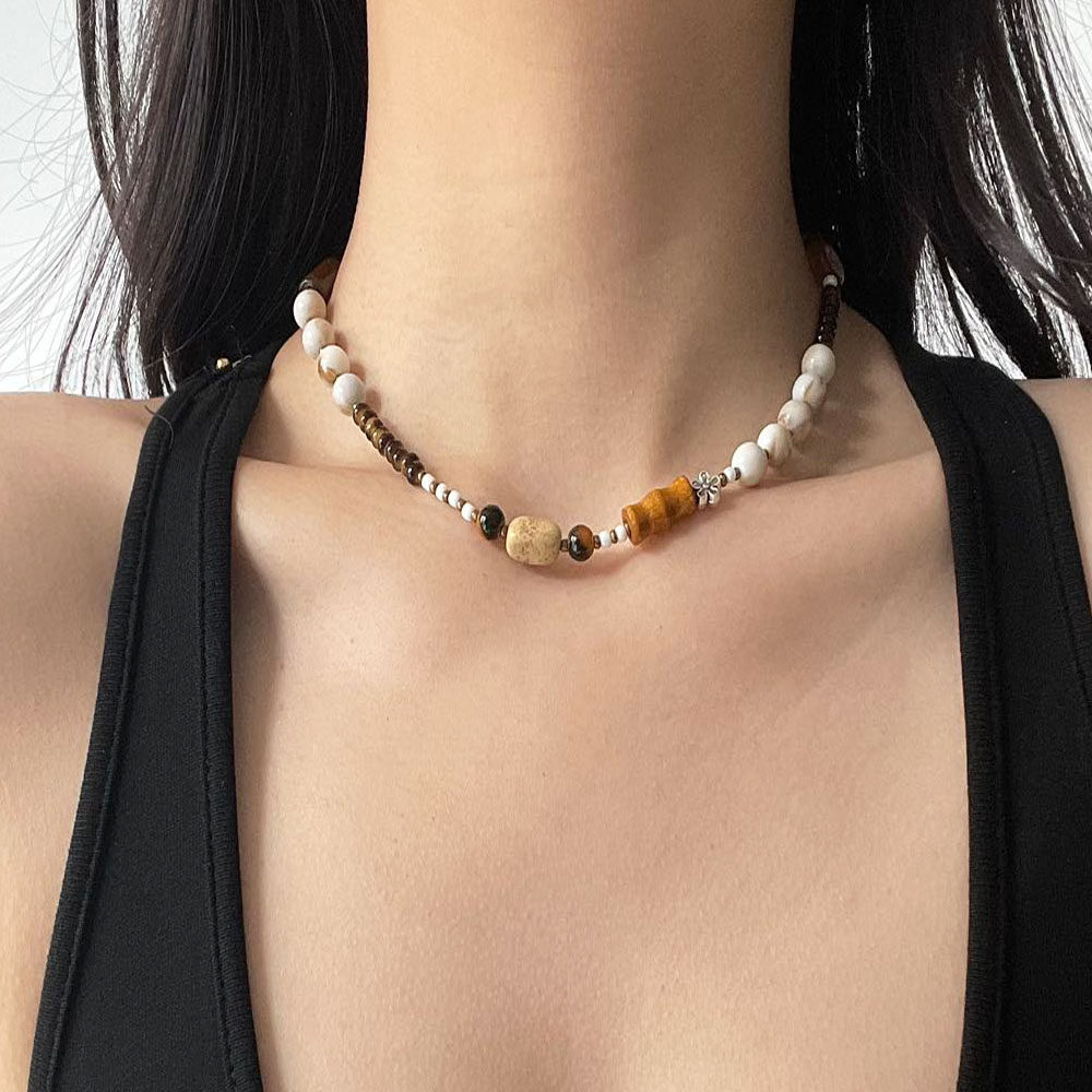 新中式天然石串珠棕色美拉德不规则设计感圆珠锁骨链项链配饰