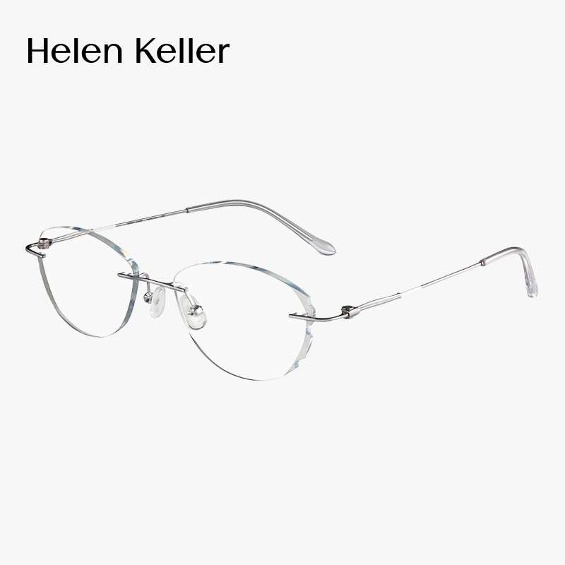 海伦凯勒新款无框美边近视眼镜女可配度数轻颜镜防蓝光K2018