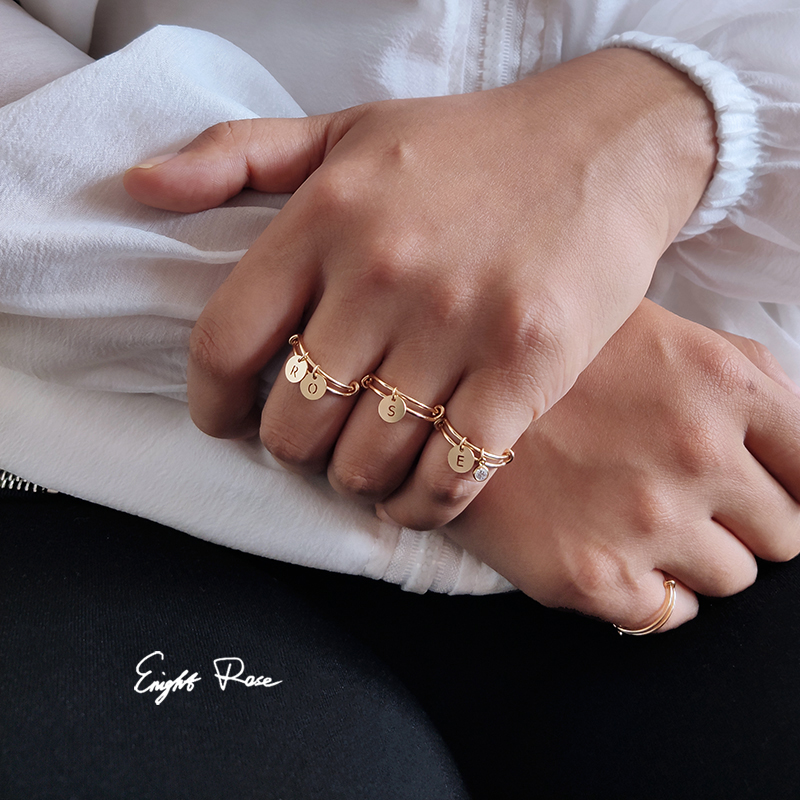 字母戒指 你的名字定制14K包金推拉可调节指环不掉色闺蜜生日礼物