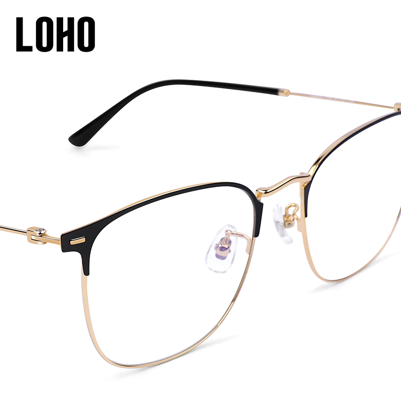 LOHO金属眼镜复古商务眉框镜架男可配近视金色斯文镜架女LH25012