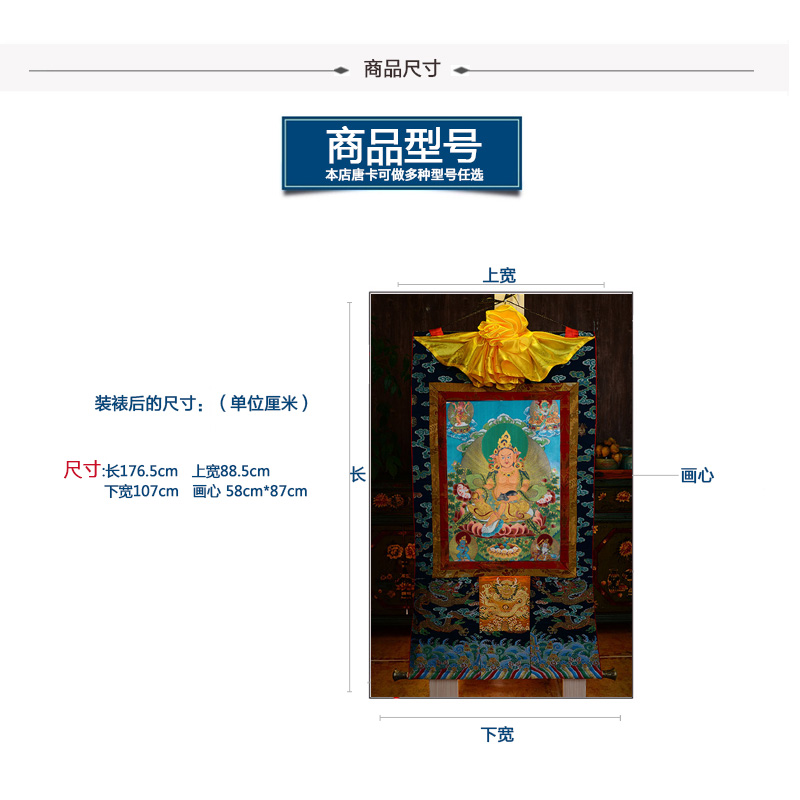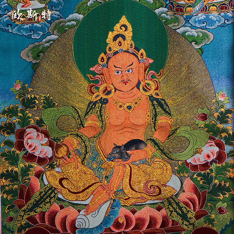 欧斯特黄财神刺绣唐卡 西藏财神家居客厅装饰画 壁画玄关唐卡挂画
