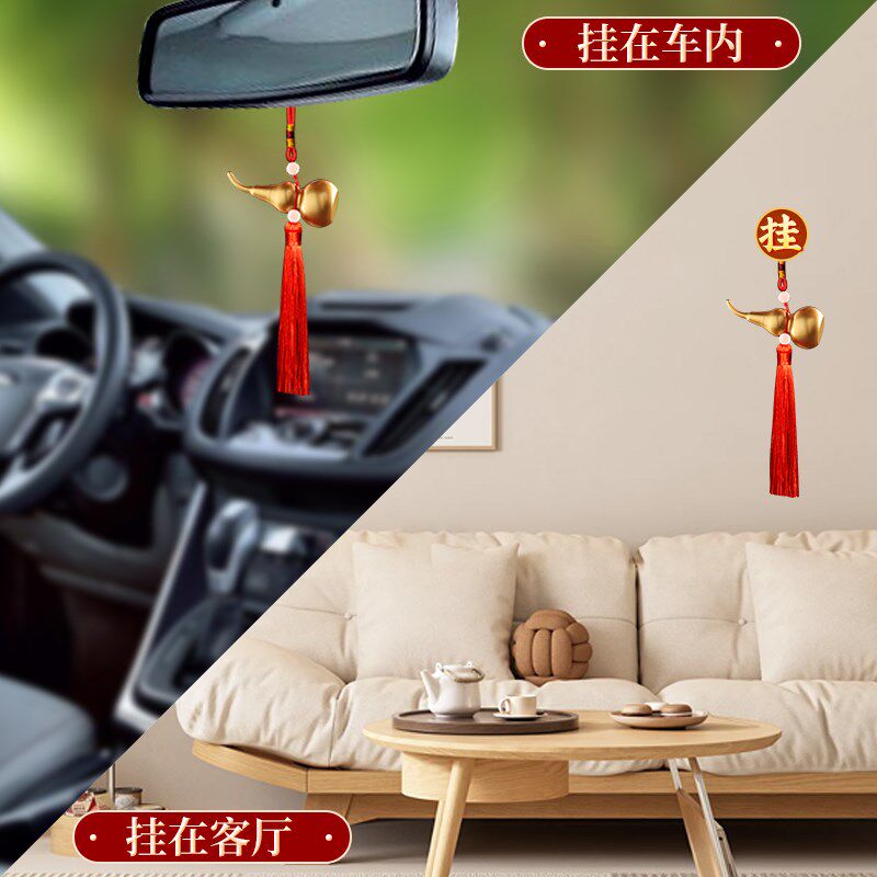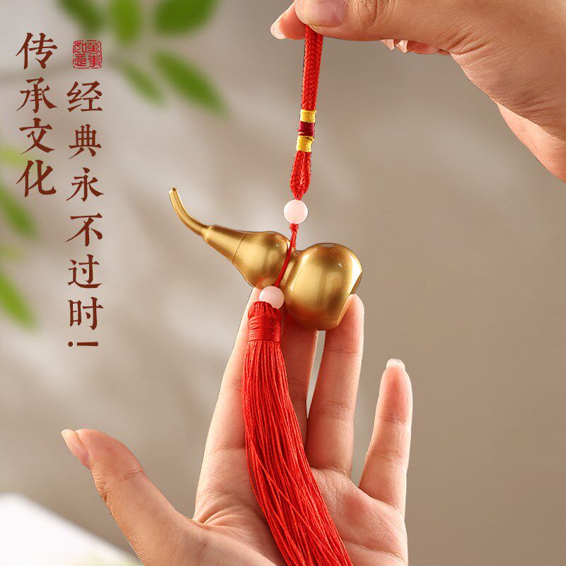 小铜葫芦挂件空心装朱砂黄铜开口车内办公桌家居客厅摆件工艺品