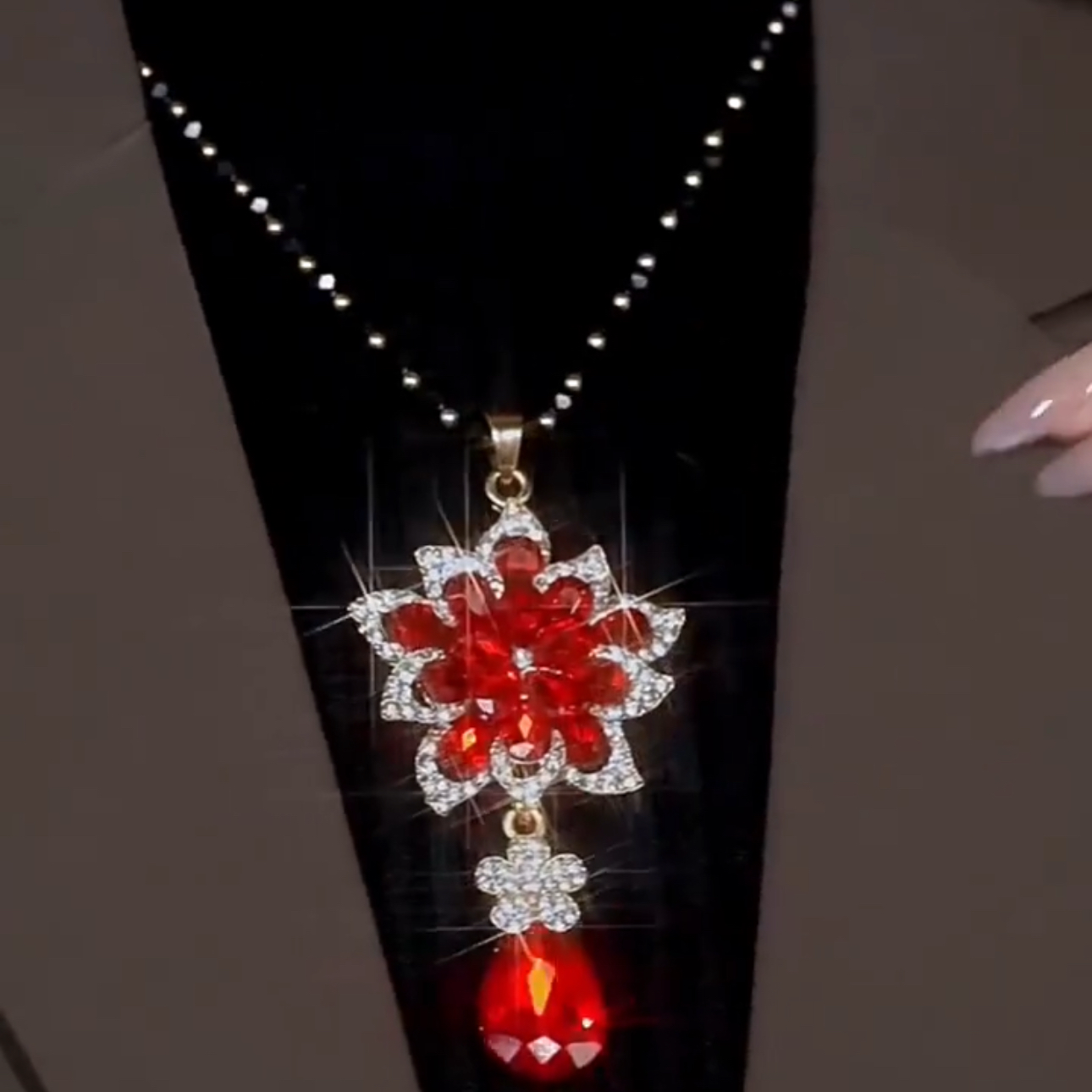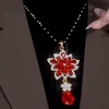 红色水晶项链花朵毛衣链长款高级感2025年新款潮百搭秋冬挂件配饰