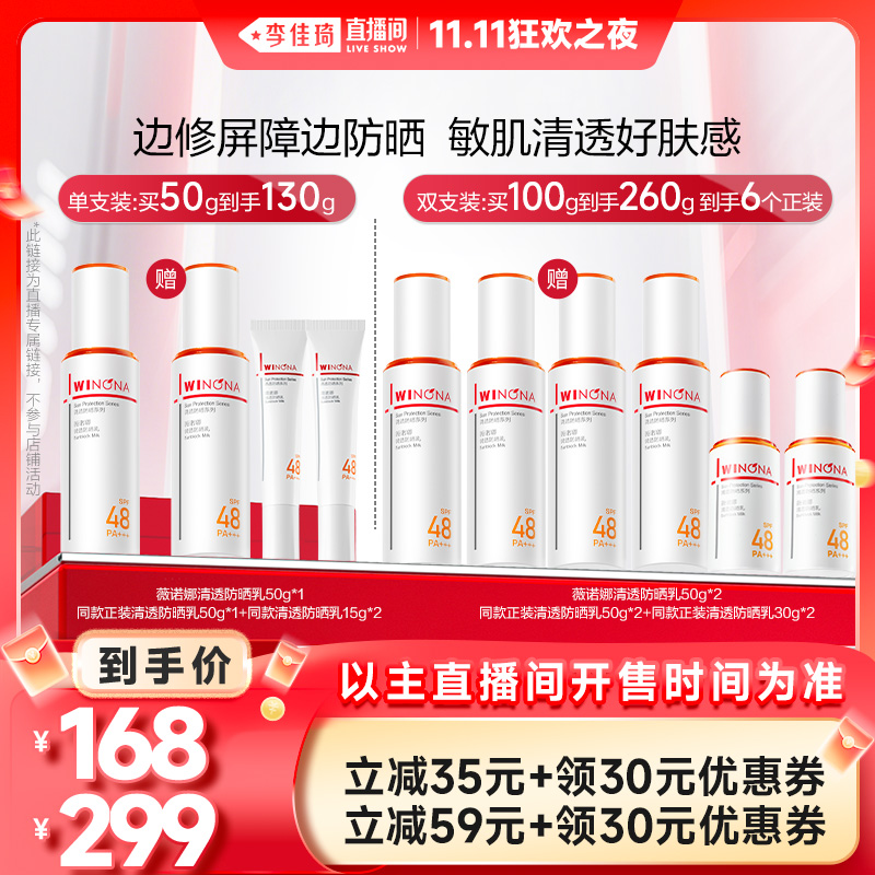 【李佳琦直播间双11狂欢之夜】薇诺娜清透防晒乳官方正品