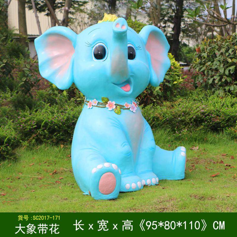 卡通大象雕塑户外仿真公园动物摆件景区玻璃钢售楼部幼儿园装饰品