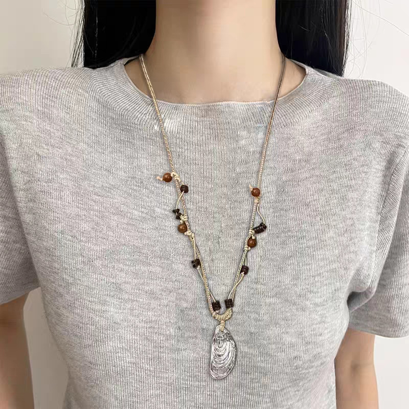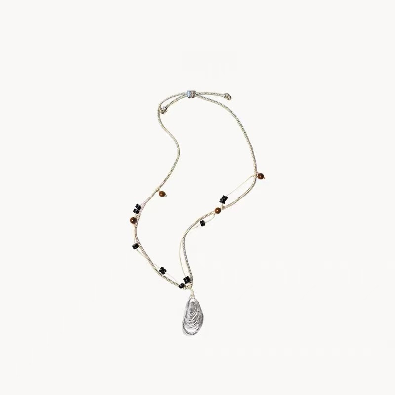 日本品质欧美时尚甜酷风编织绳串珠项链小众设计贝类吊坠个性锁骨