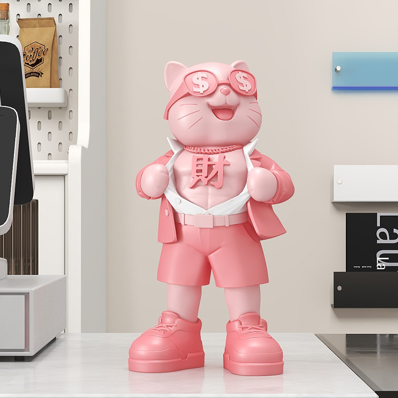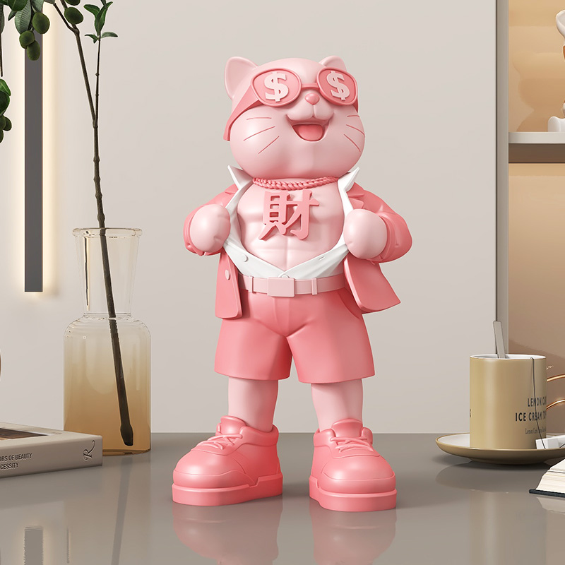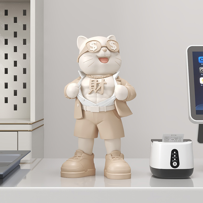 肌肉招财猫开业摆件存钱罐公司前台办公室收银台装饰乔迁开业礼品