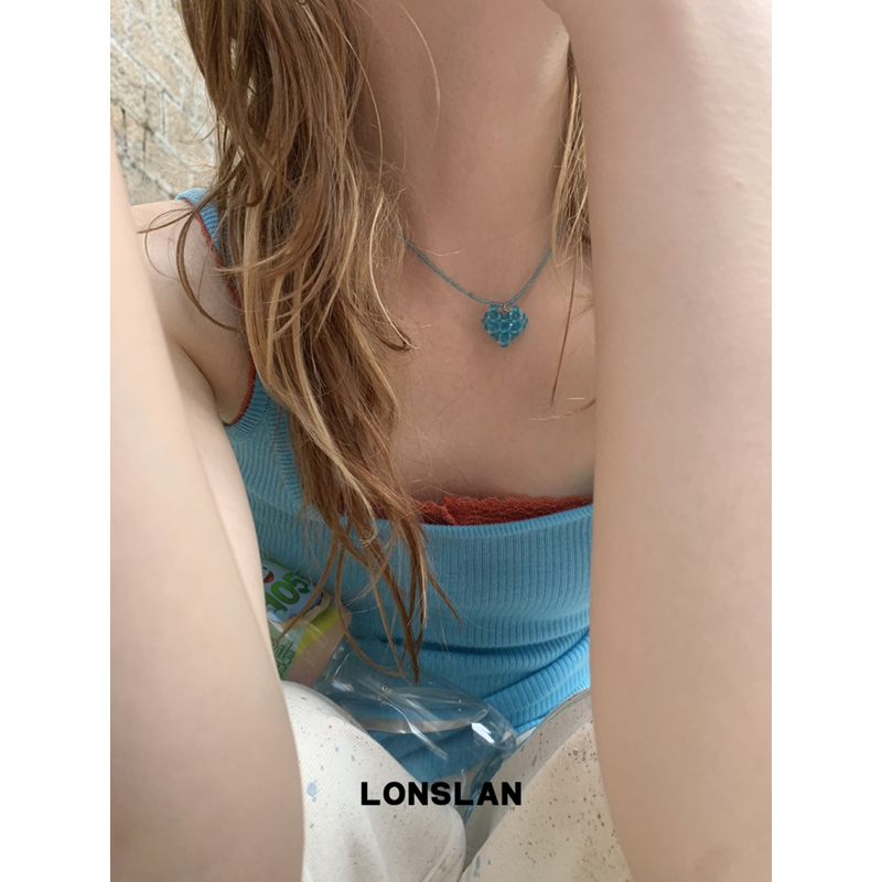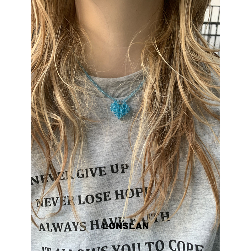 LONSLAN ACC 2025ss超显白湖蓝色爱心串珠项链韩系个性配饰