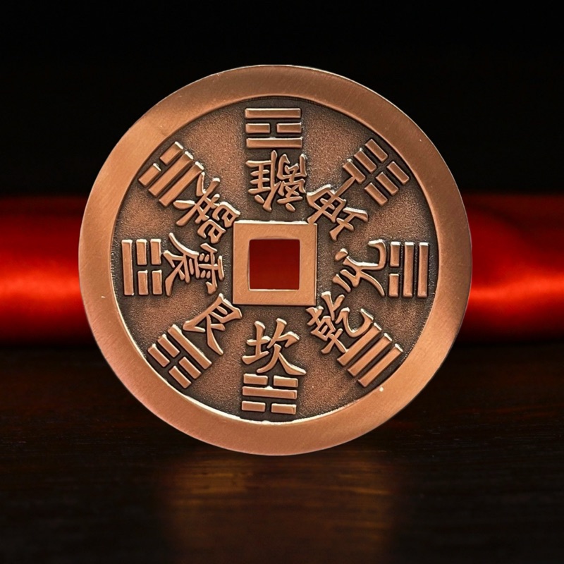 紫铜山鬼花钱钥匙扣挂件吊坠真品纯八卦铜钱平安车挂饰品项链男士
