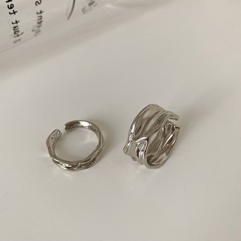 韩版S925银几何不规则戒指女复古时尚褶皱开口指环嘻哈个性食指戒