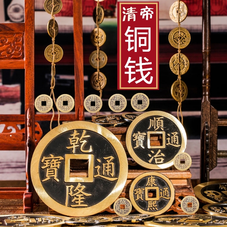 五帝六帝铜钱八帝钱十帝钱挂件顺治康熙大号加厚铜钱桌面现代摆件