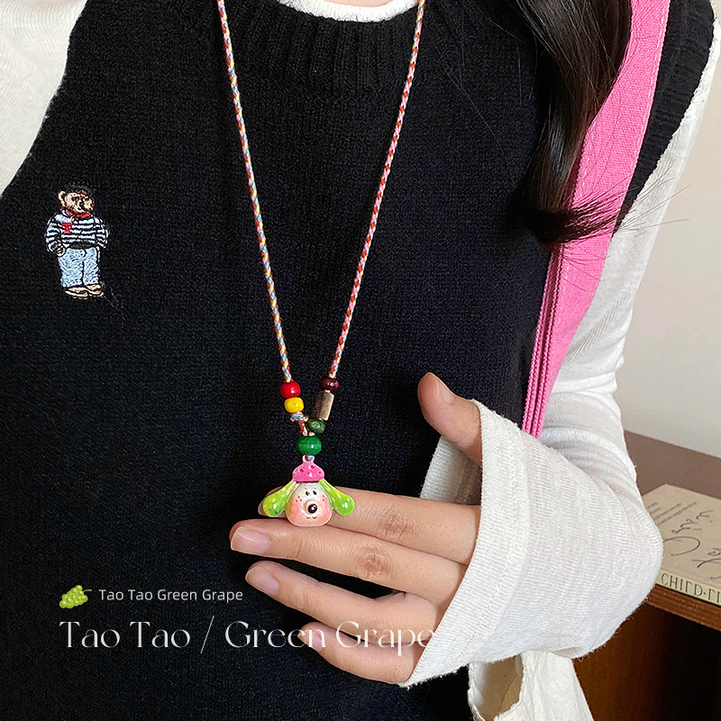 夏天多巴胺彩色小狗串珠编绳项链女可爱毛衣链长款配饰