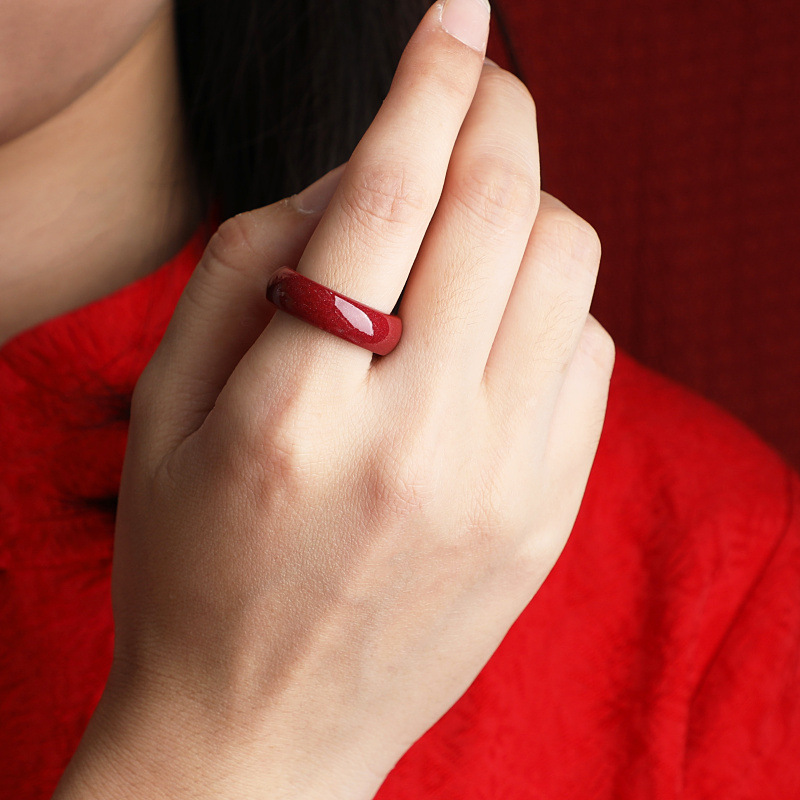 高含量紫金砂晶体砂朱砂戒指跑环光面戒圈指环手串项链吊坠挂件