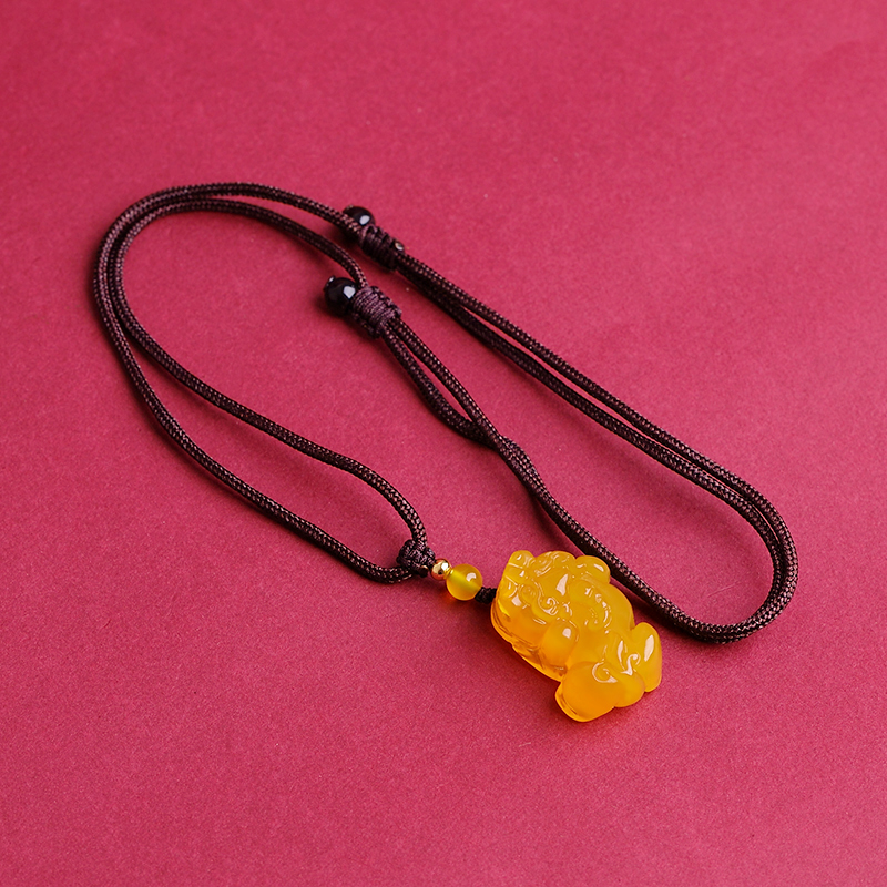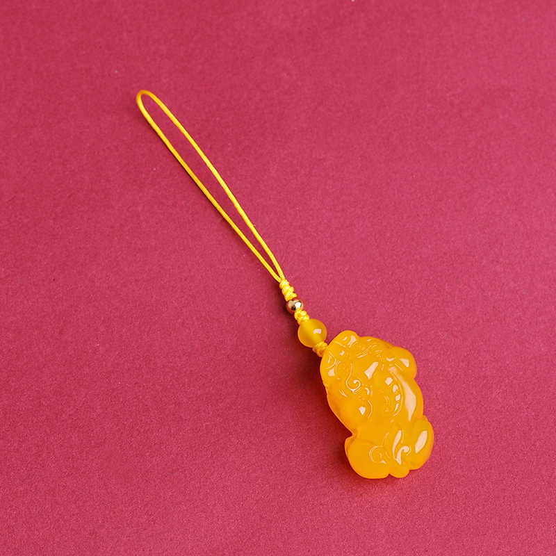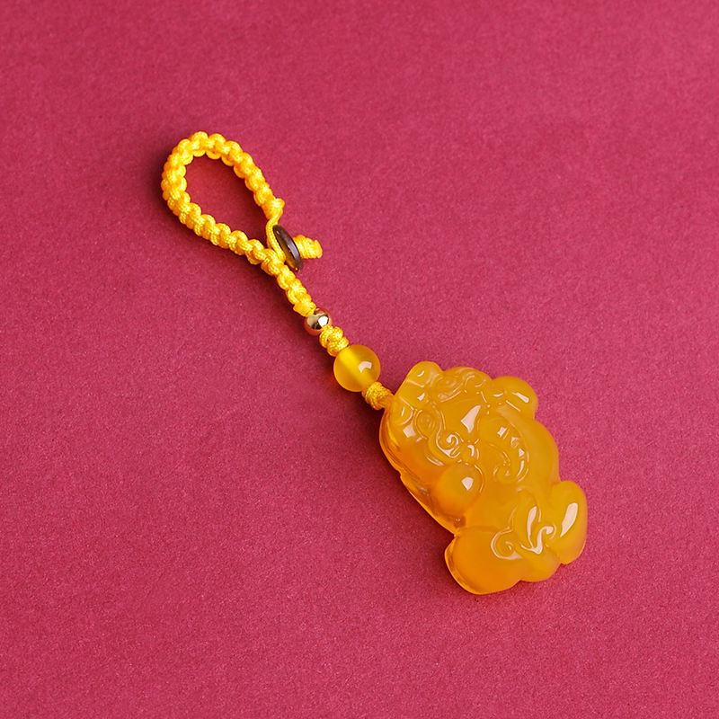 天然黄玛瑙貔貅吊坠玛瑙招财进宝钥匙扣补土挂件黄色水晶属土项链
