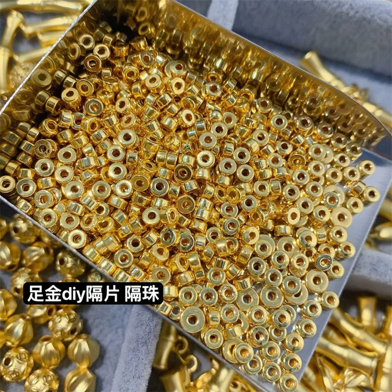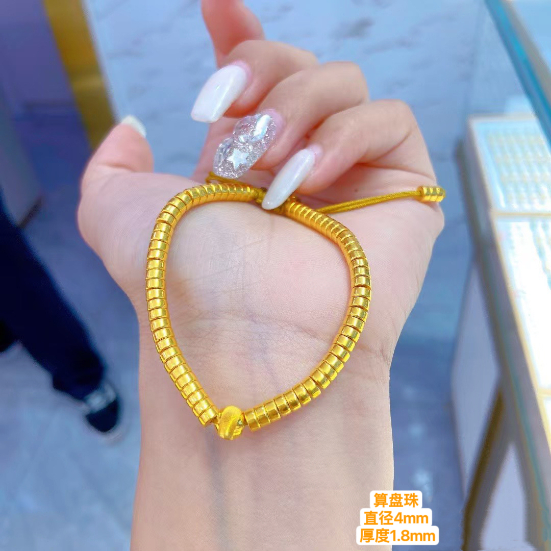 足金999算盘珠扁珠隔珠路路通转运珠子小金珠盘缠碎碎金红绳手串