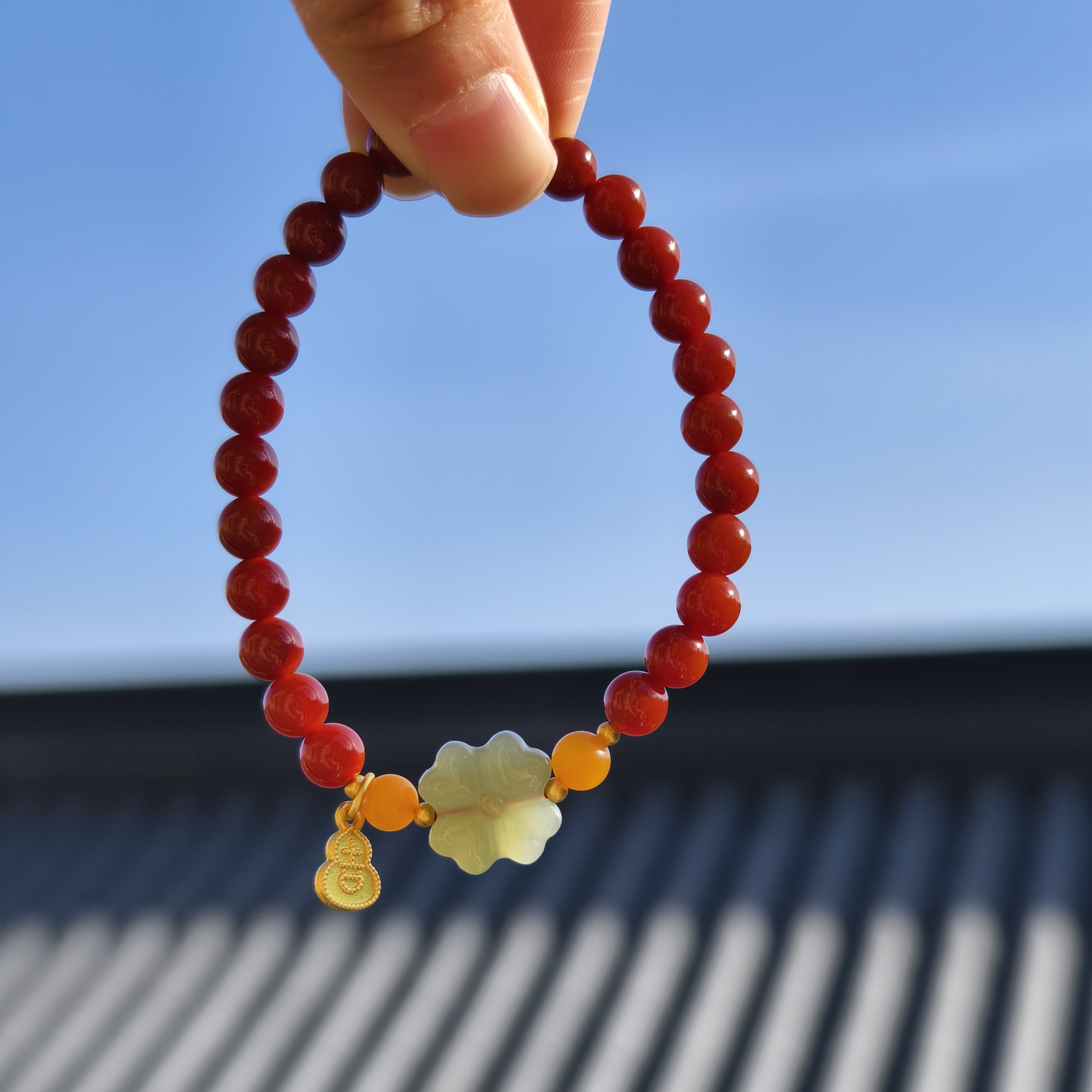 南京鸡鸣代寄事事顺利红色女生手串链四叶草带葫芦吊坠幸福美满