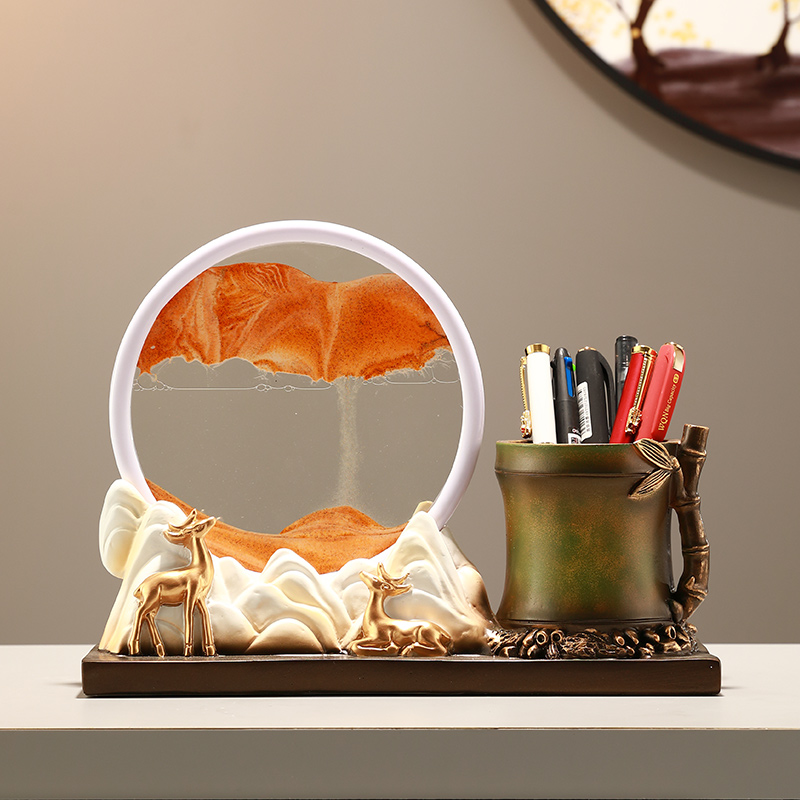 创意客厅流沙画小鹿摆件书房装饰品办公室笔筒摆设送老师学生礼物