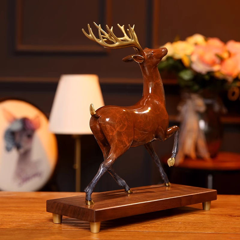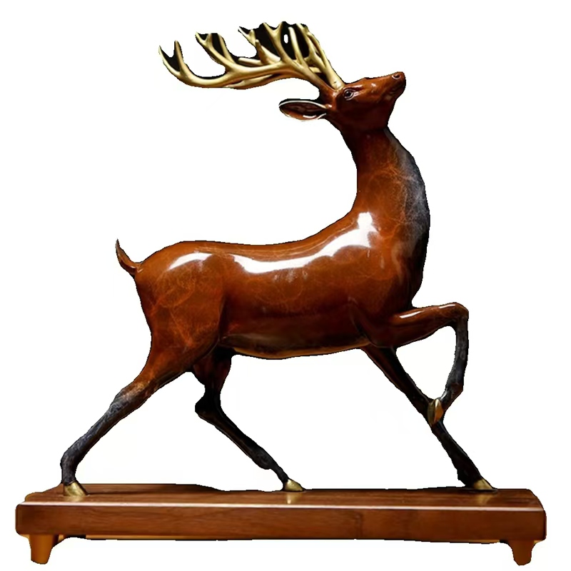 铜智欧福鹿高升纯铜鹿摆件玄关客厅办公室酒柜梅花鹿工艺品新品