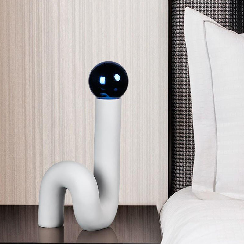创意现代简约弯曲蓝色球几何摆件样板房酒店民宿轻奢摆设软装饰品