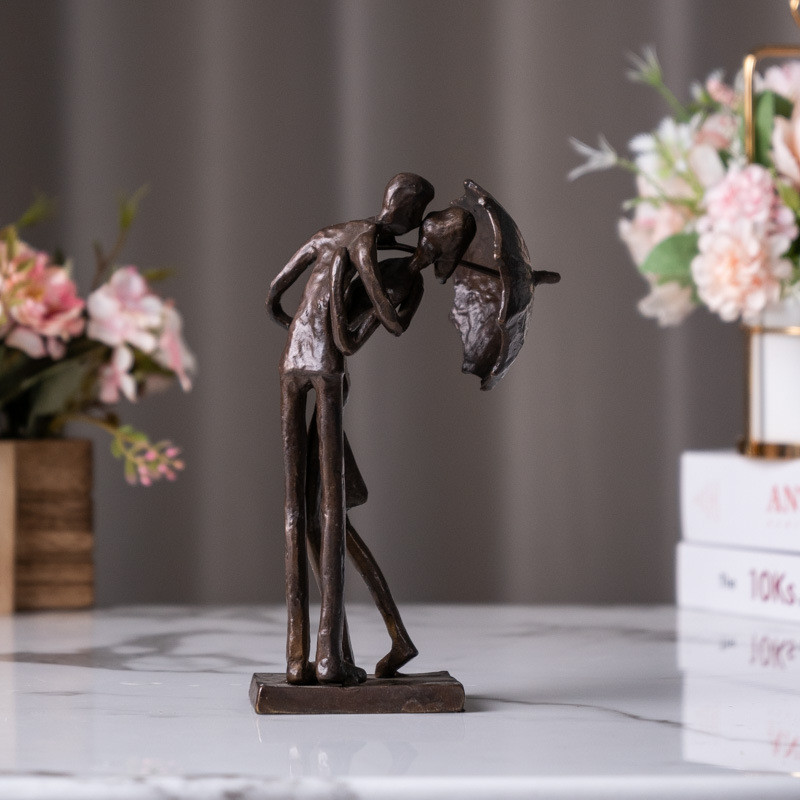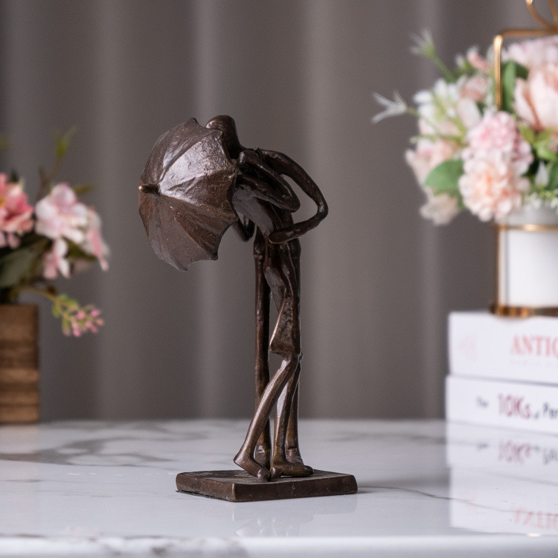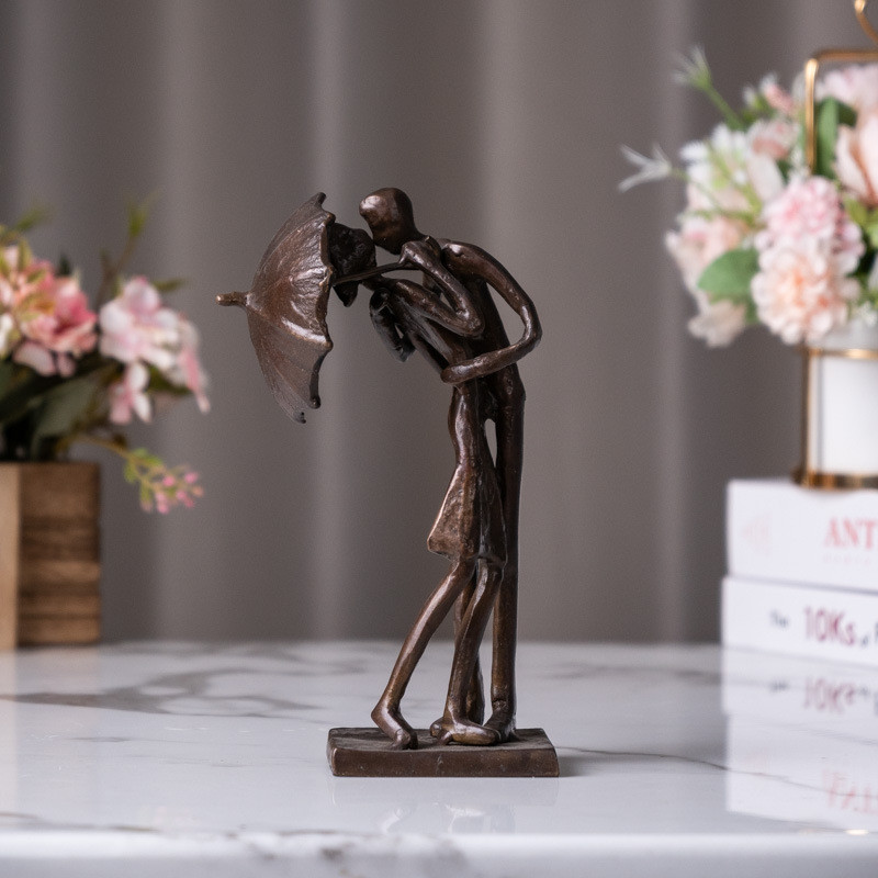 情侣伞下亲吻金属工艺品客厅家居金属个性情人节桌面复古摆件现代
