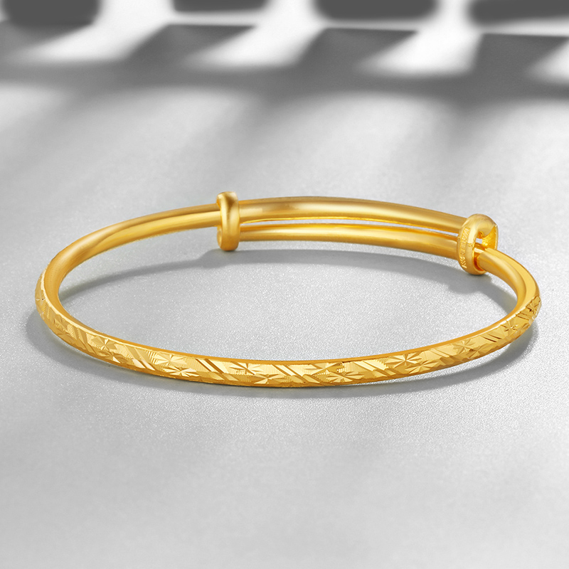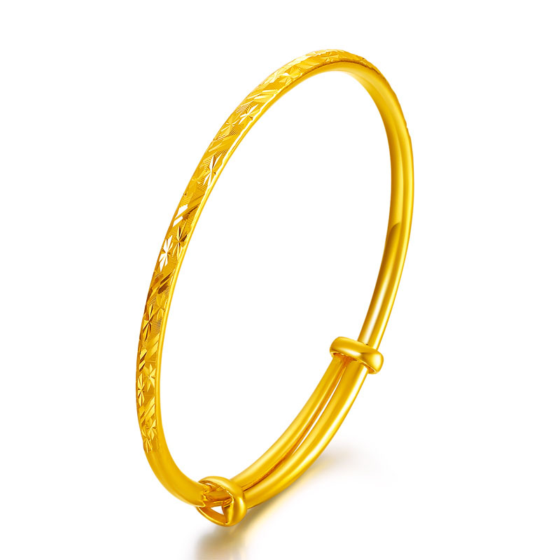 谁羽珠宝足金黄金手镯 女款光面车花抽拉婚嫁手环活口手镯 S7511A
