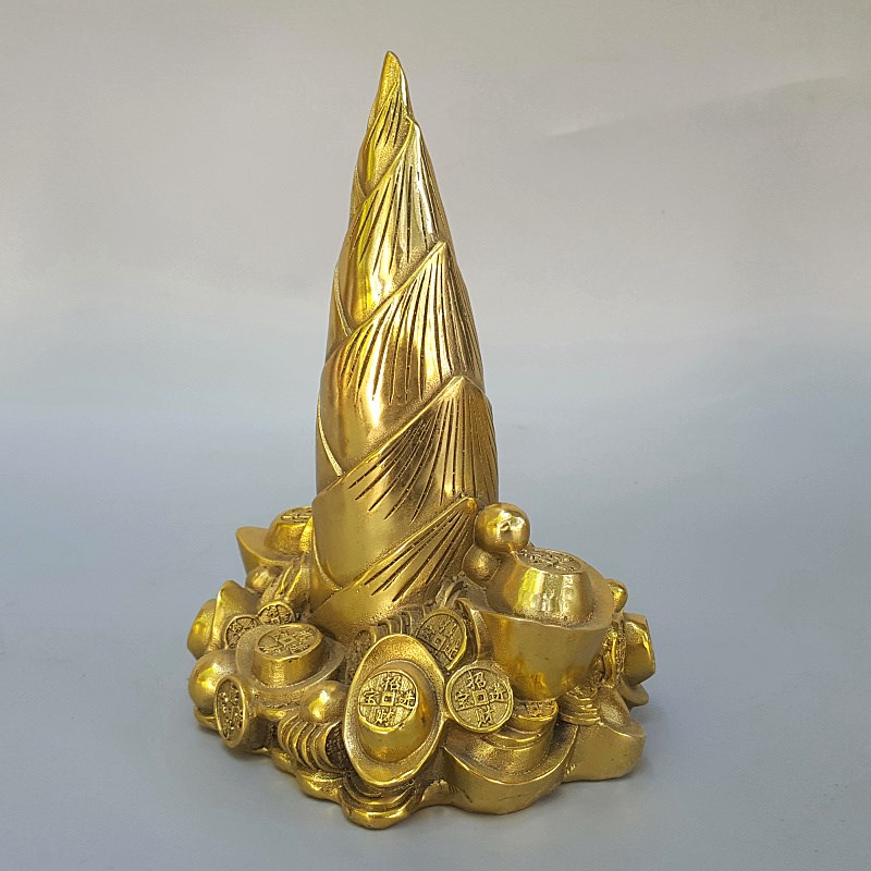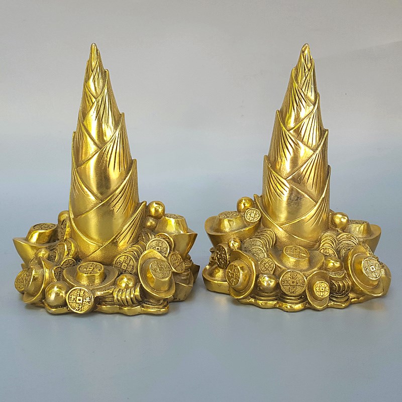 铜竹笋中式摆件黄m铜铸造包浆醇厚元宝节节高家居办公饰品日常送