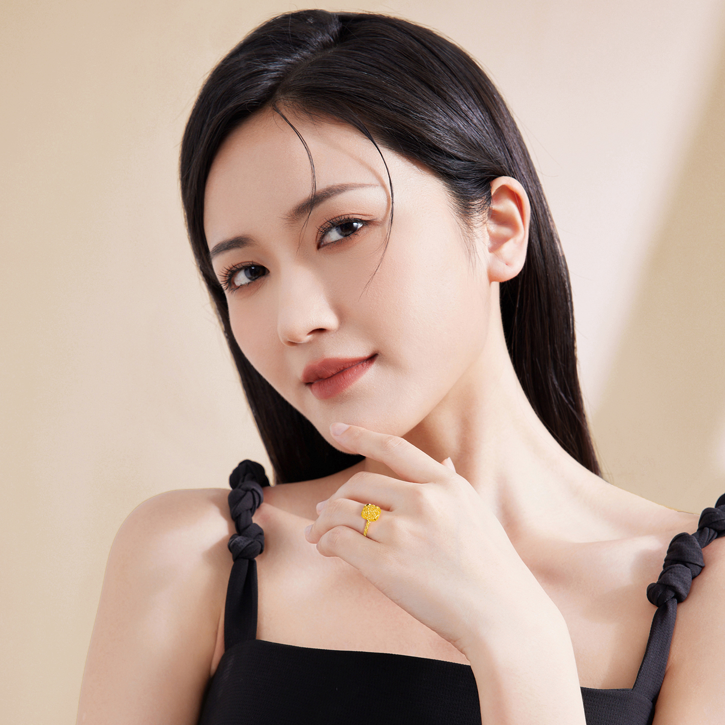 周六福5G黄金戒指女计价足金爆闪方糖手饰节日礼物官方旗舰店