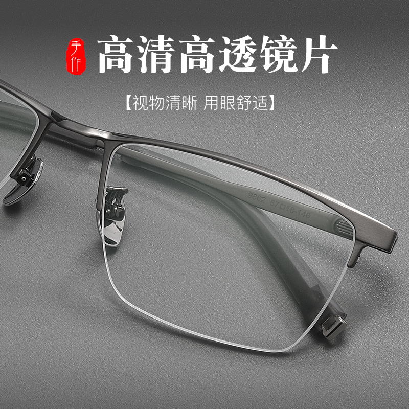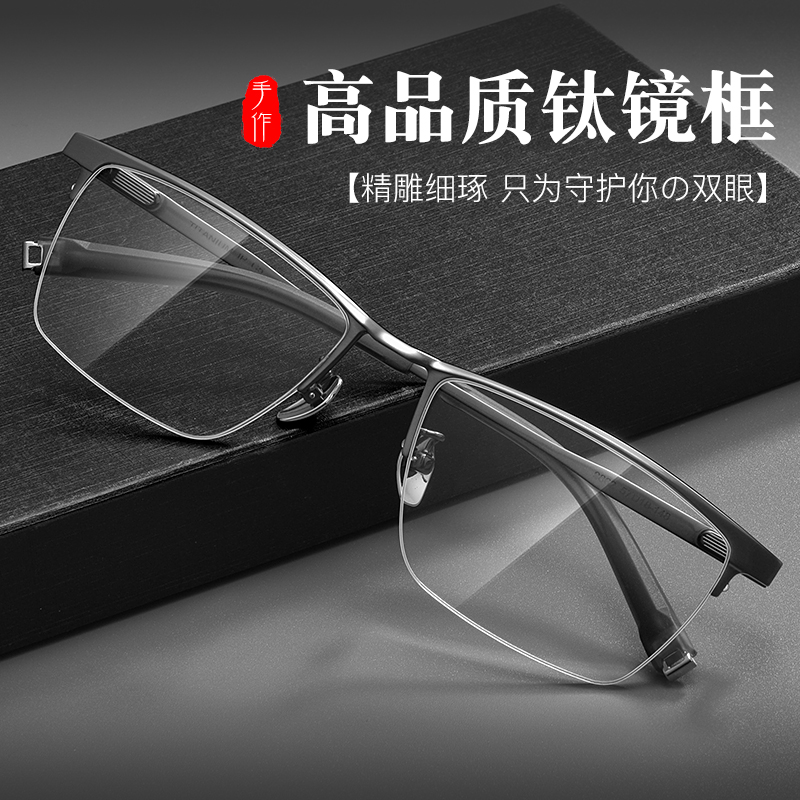 设计师纯钛半框近视眼镜男款商务超轻可配度数高级感防蓝光眼睛架