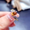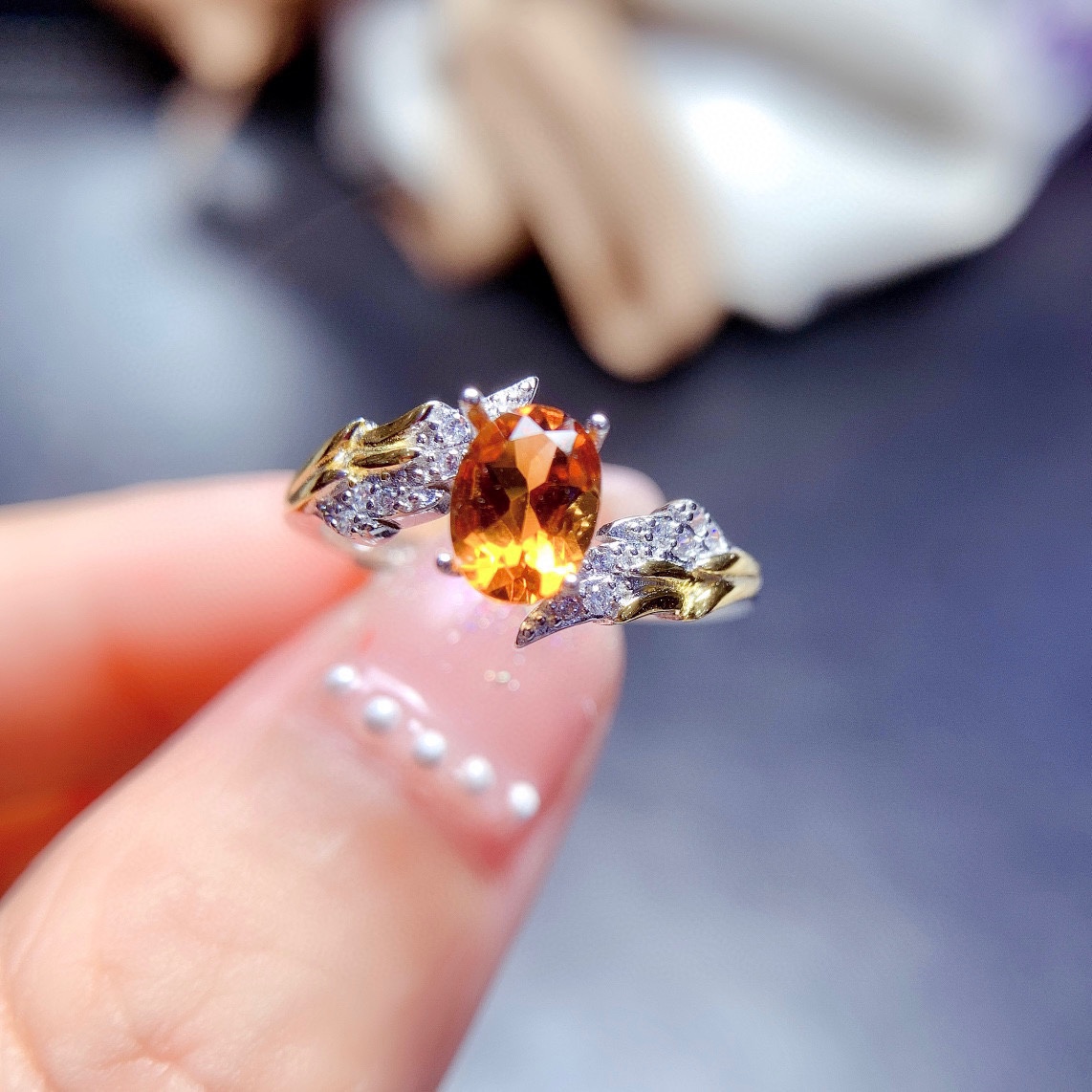 s925银饰戒指空托椭圆形5*7mm女时尚个性轻奢指环开口戒子镶黄晶
