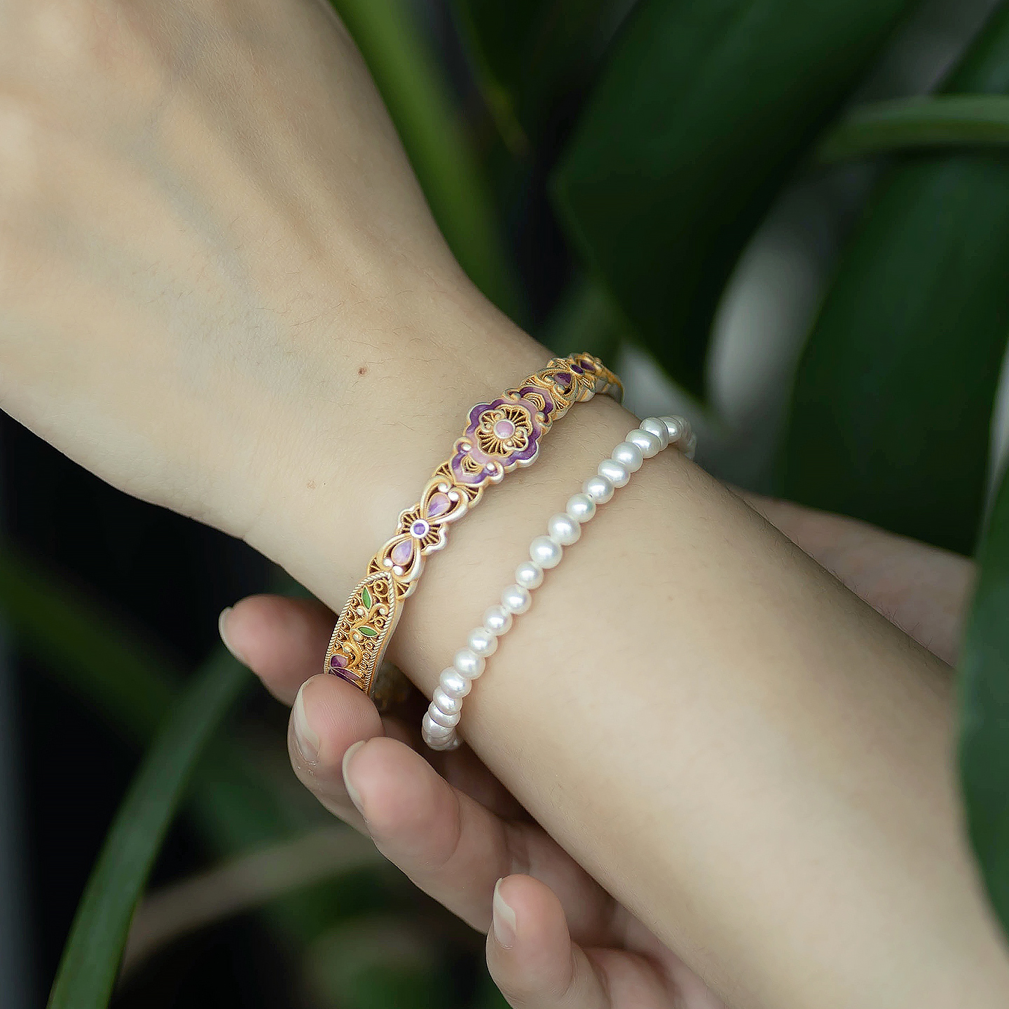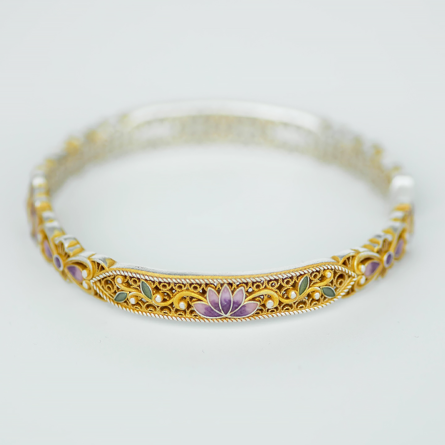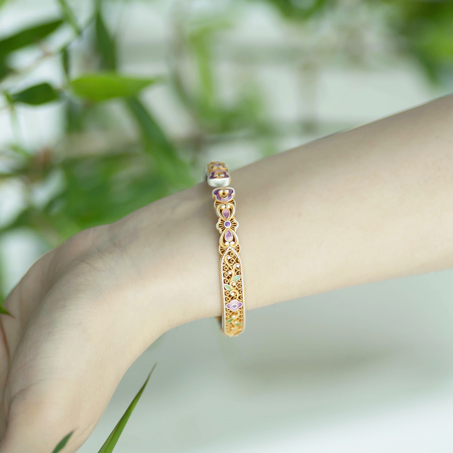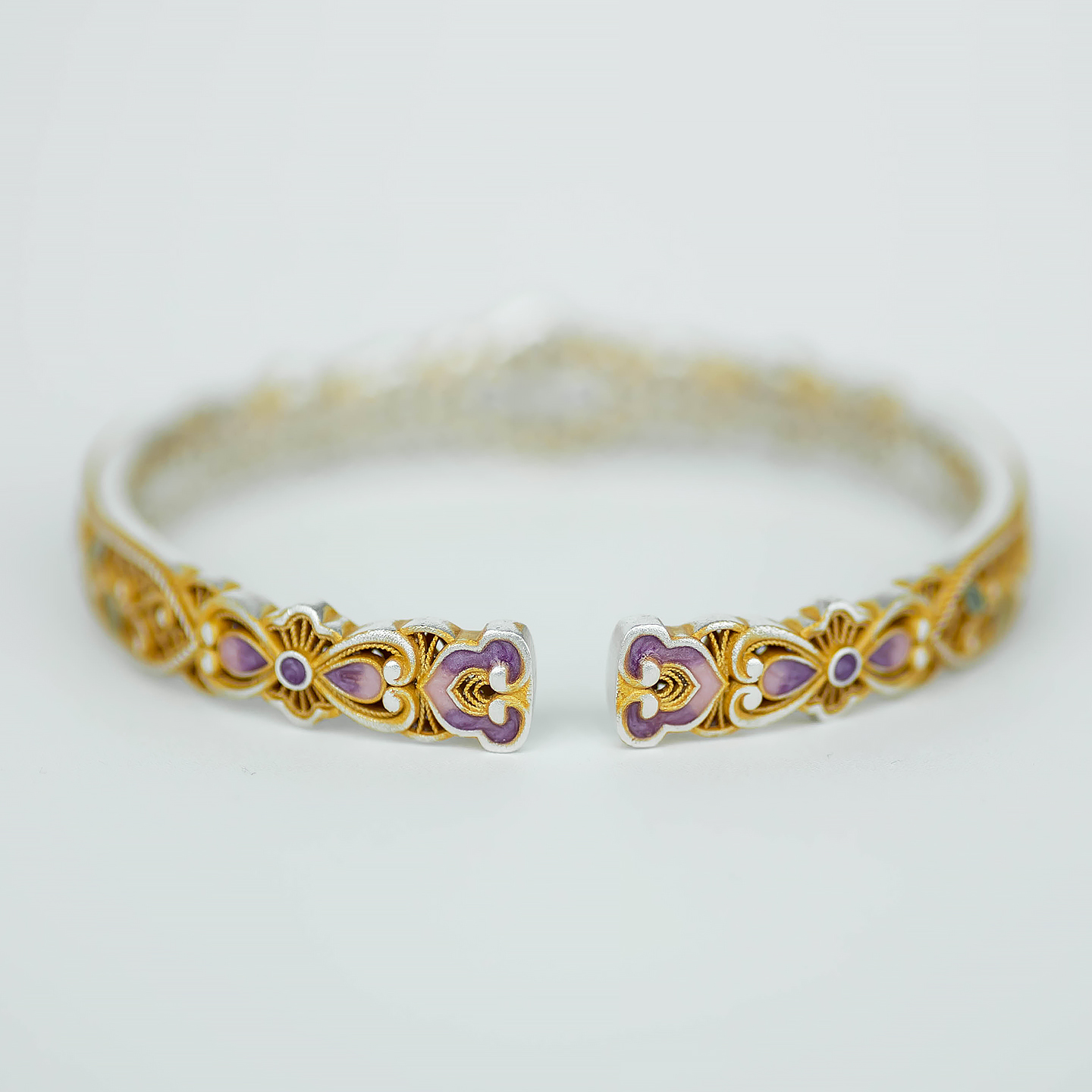绮罗香 足银9999描金珐琅彩国风新中式文艺手镯开口镯紫气东来