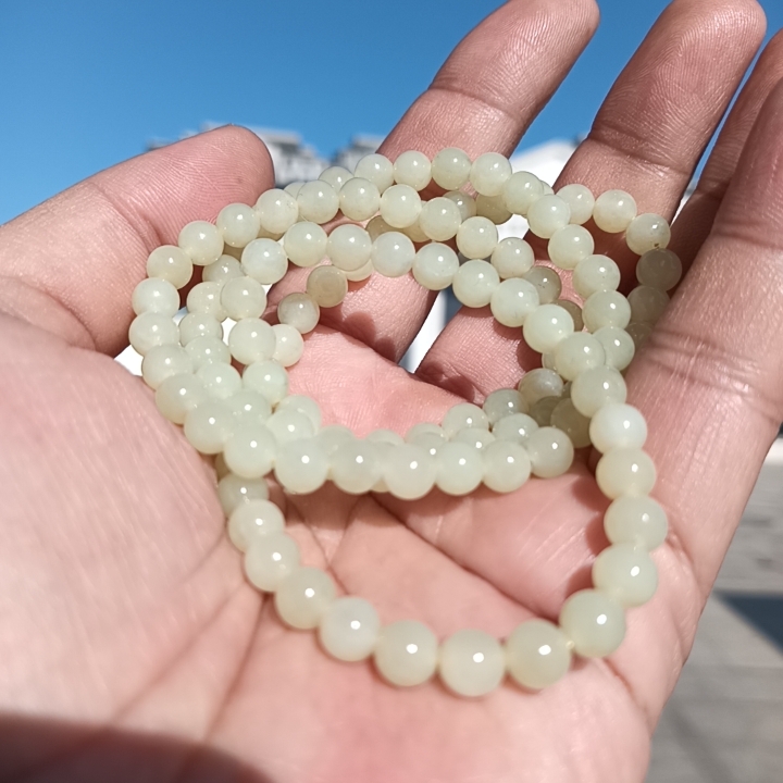 彩云轩特价玉器35.8克新疆和田玉黄玉黄口料圆珠手链手串项链女款