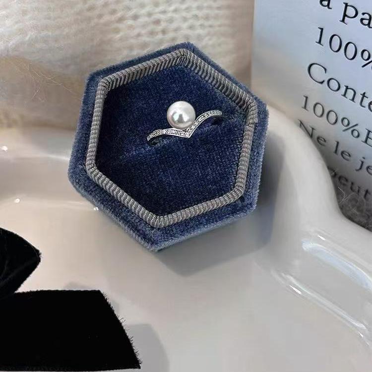 闪钻珍珠戒指女款冷淡风指环小众设计独特轻奢高级感求婚食指戒