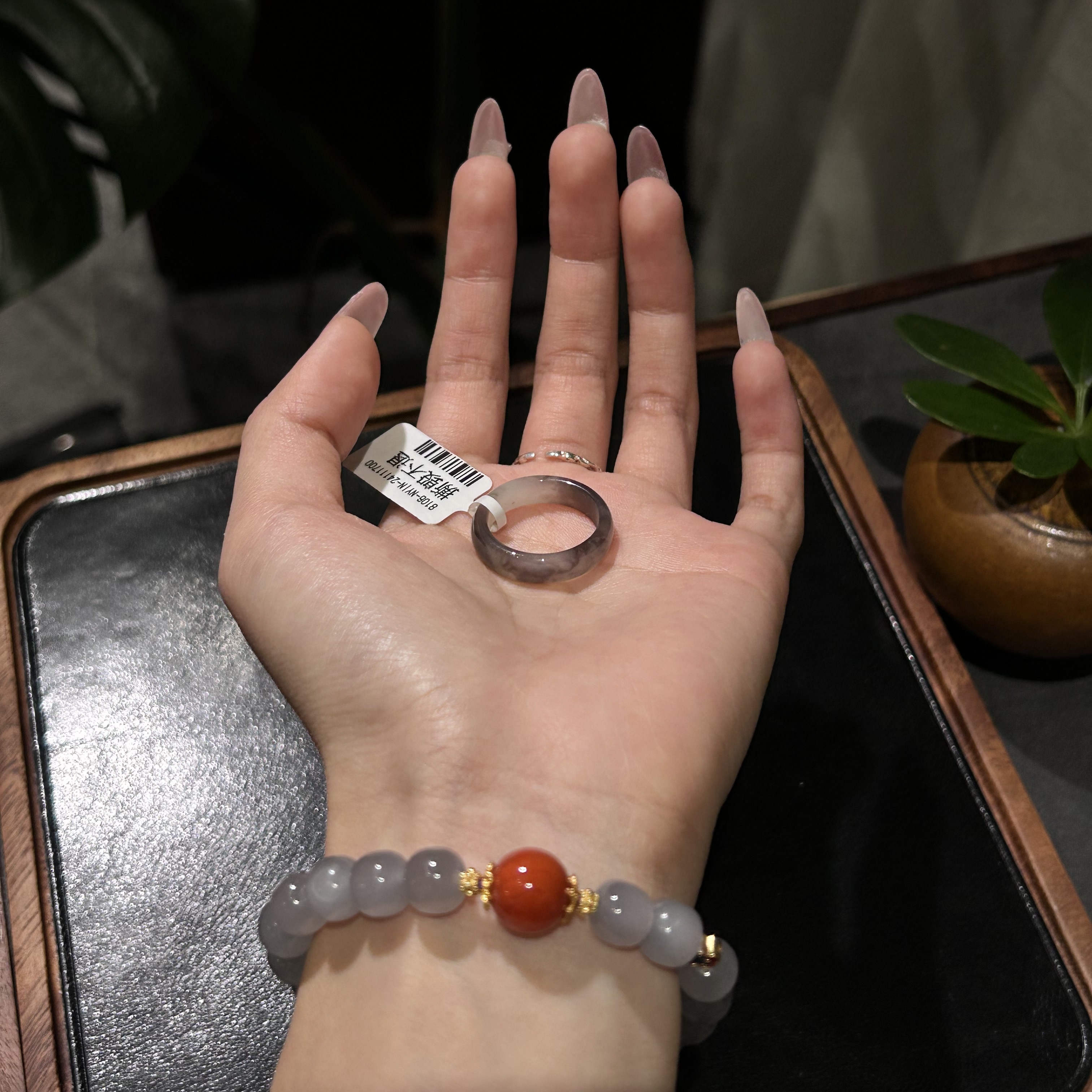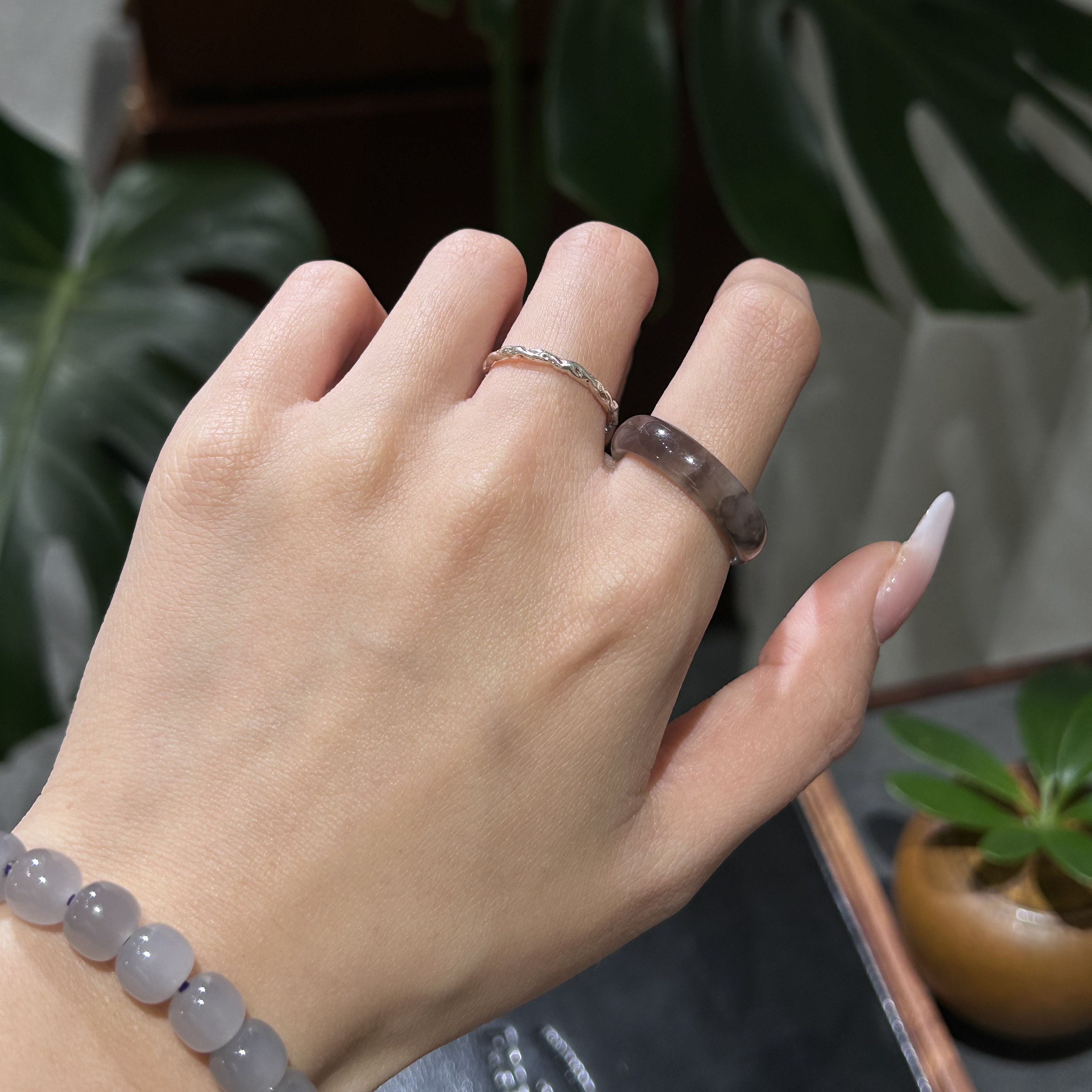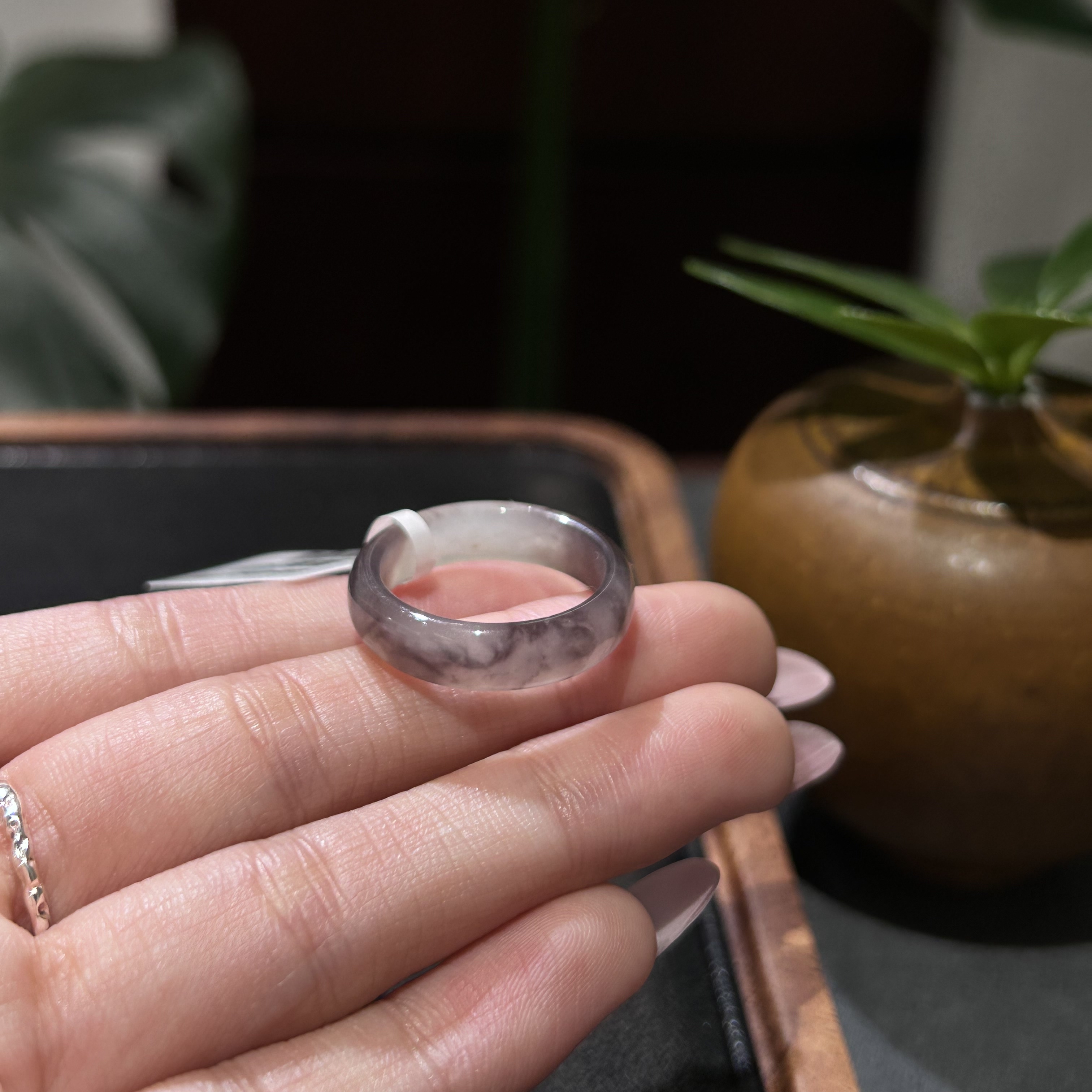 天然和田玉烟紫戒圈 双色意境感 温润质感 日常百搭 货号8106