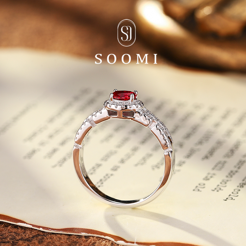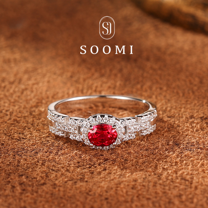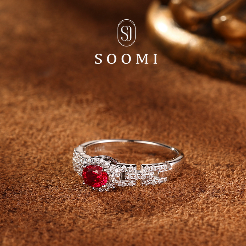 【SOOMI曙光】925银实验室培育鸽血红宝石戒指简约百搭戒环设计女
