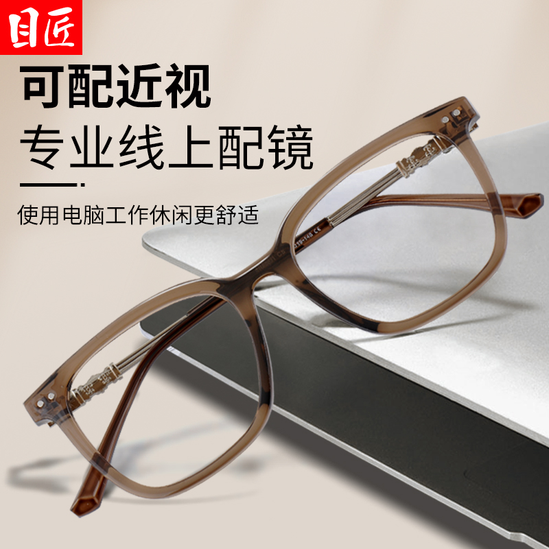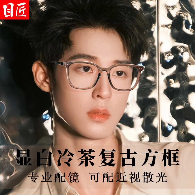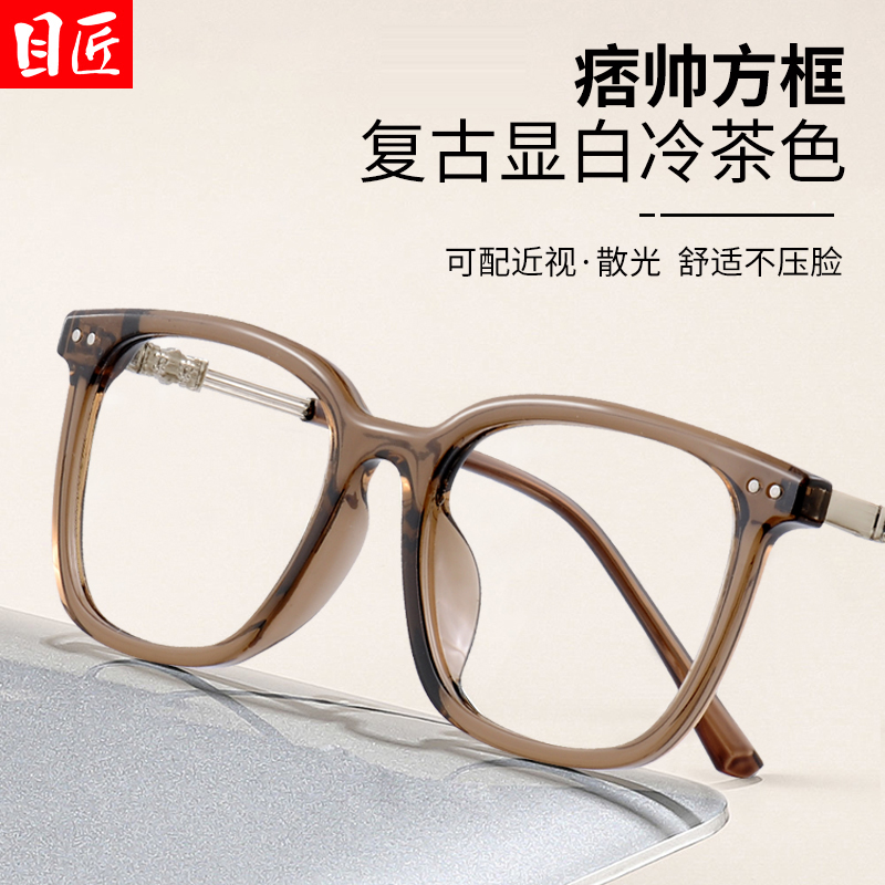 冷茶色近视眼镜框男款痞帅高级感可配度数复古大方框大脸日系镜架