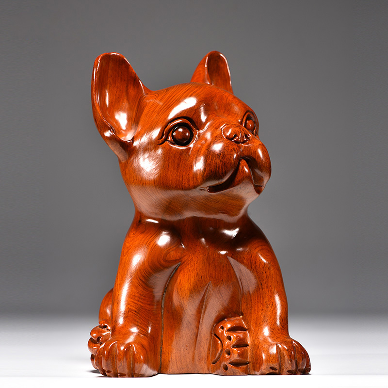 花梨木雕狗摆件十二生肖狗实木家居客厅电视柜办公装饰红木工艺品
